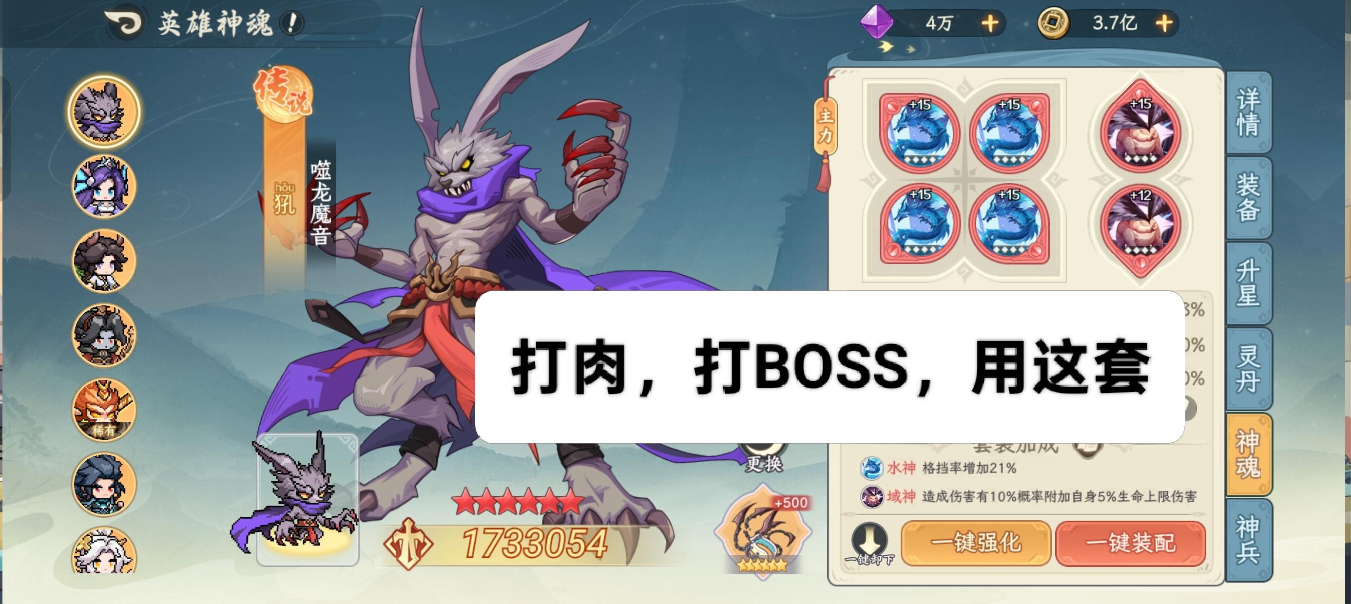 我今天刚通关的昆仑,46天的零氪玩家,来分享一下通关配置和心得,嫦娥7+5,神农10+5图1,图3是嫦娥神农不带神魂的面板图2,图4是圣物情况图3,图6是神兵洗练神魂看清楚位置,命魂没+15,所以我没洗3格挡力魂可以不升,+9也没多少资源,随便天地魂用+15星神,伤害减免和防御加成(几星无所谓,没有高星拉低星就行,舍不得拉低星就忍一忍)锤子要9星秘技带回血除了有巢和BOSS都能打