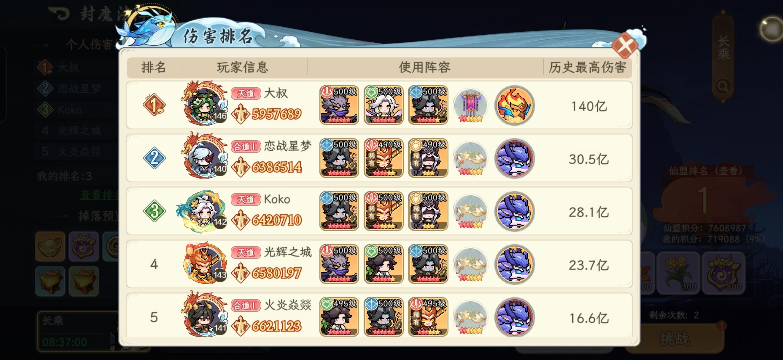 五:天门祈愿第二天会开启天门祈愿建议大家不要抽取,神兵会在第三天加入这里。抽取建议为:阎罗神兵-嫦娥神兵-阎罗本体六:灵宠只推荐麒麟与青龙,前期最好的情况就是一队携带麒麟,另一队练度低的携带青龙,在两队都成型后再对比伤害携带麒麟。七:二队培养在第四天的世界boss相柳就会开启两队讨伐,这时都有up人物活动送的孙悟空 蜘蛛夫人的本体,多up搜神卷拿去抽孙悟空即可,下面是配队推荐0氪or