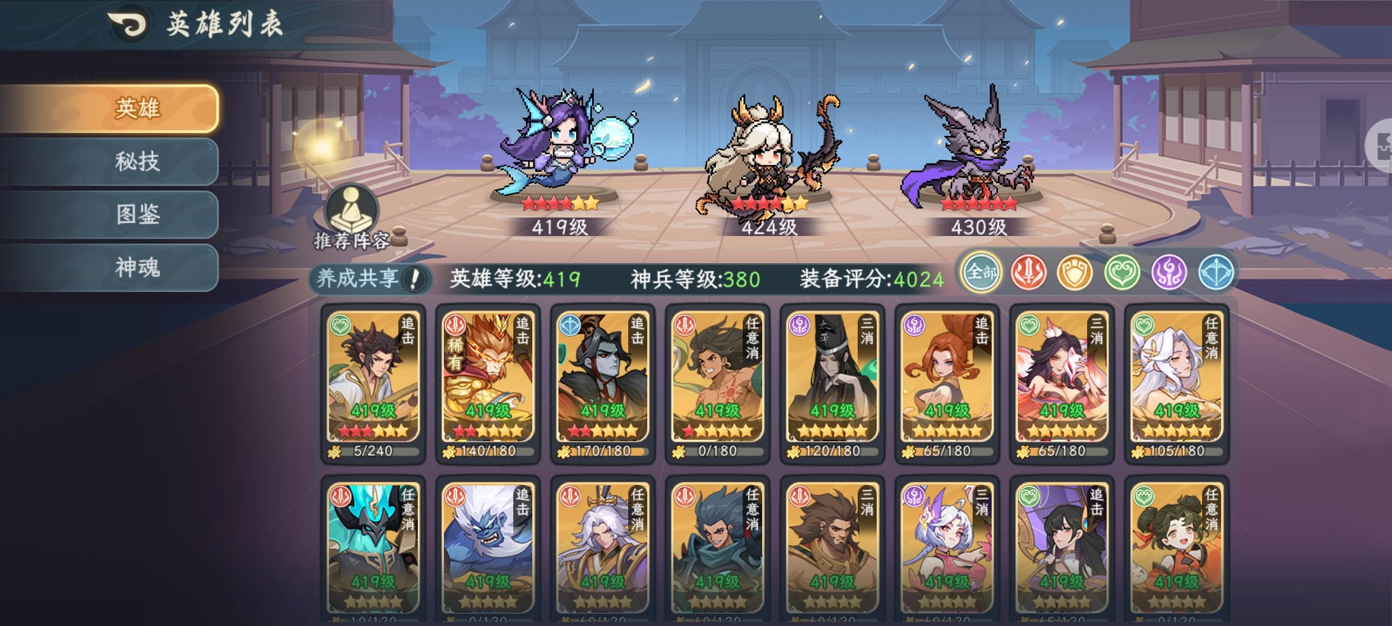 我今天刚通关的昆仑,46天的零氪玩家,来分享一下通关配置和心得,嫦娥7+5,神农10+5图1,图3是嫦娥神农不带神魂的面板图2,图4是圣物情况图3,图6是神兵洗练神魂看清楚位置,命魂没+15,所以我没洗3格挡力魂可以不升,+9也没多少资源,随便天地魂用+15星神,伤害减免和防御加成(几星无所谓,没有高星拉低星就行,舍不得拉低星就忍一忍)锤子要9星秘技带回血除了有巢和BOSS都能打