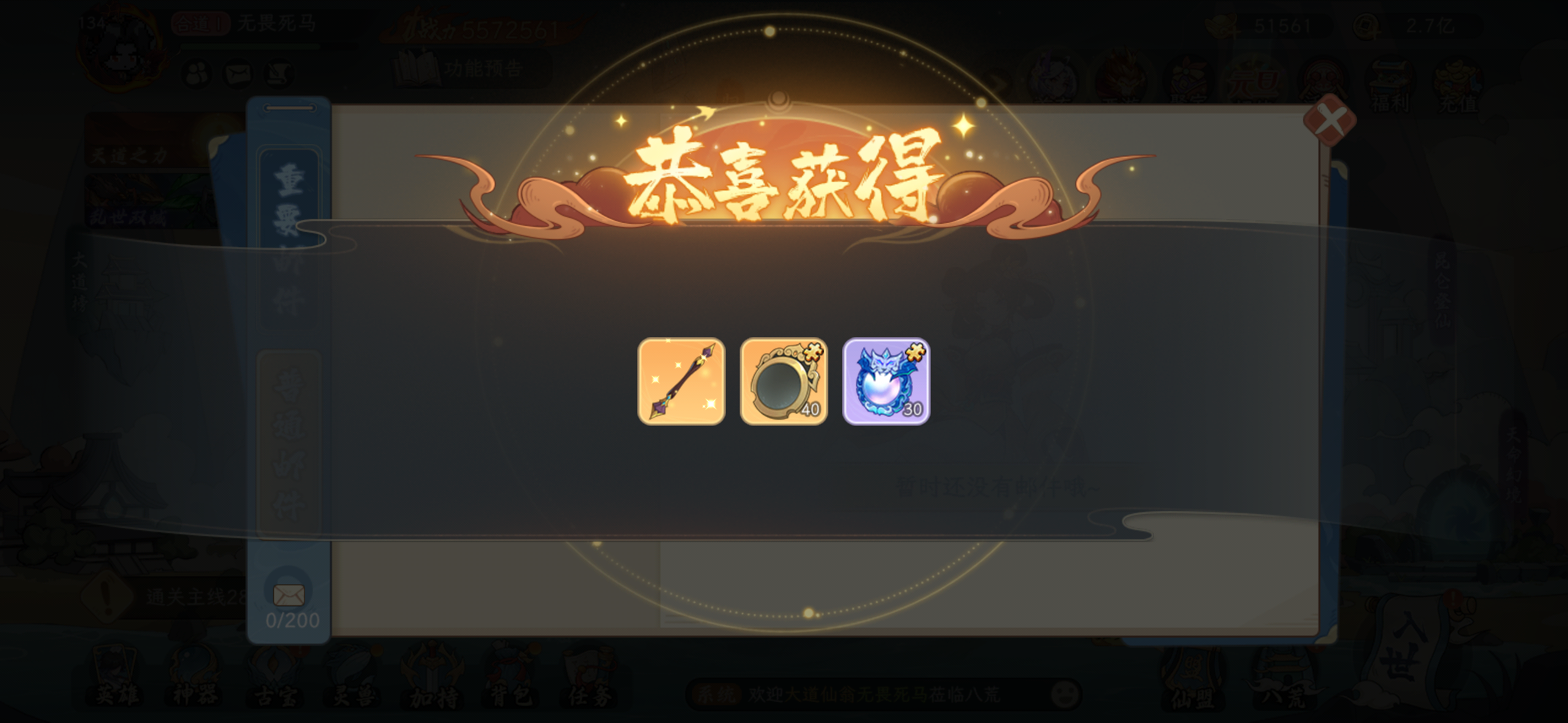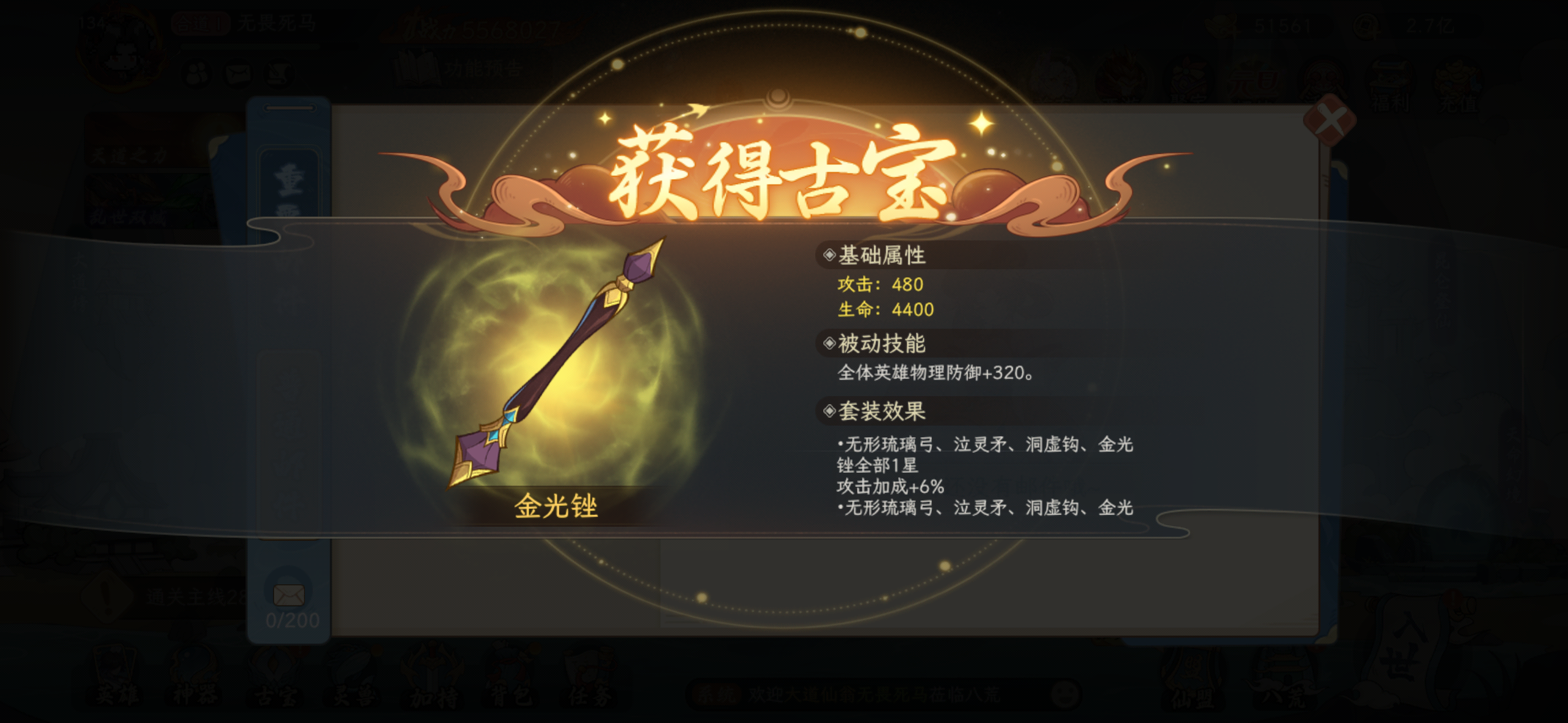 你终于来了,看来仙盟拍卖的古宝箱子还是得继续拿啊,一共3个箱子开出2金,最重要的是终于凑齐了最后一个套装