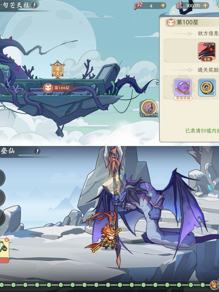 昆仑登仙出800层已经有一阵子,我是今天好不容易爬到800的,然后工会的小伙伴都想知道怎么爬的轻松,然后让我出份攻略,那我就试试,尽可能的帮助大家早日800层。首先,800层强度还是挺高的,所以必须的练度一定要有,怎么实验你练度达标呢,上个神农(我武罗练度不够,推荐武罗,武罗是农的上位替代)神器带紫雷锤,其他配置之后也会有说明,爬普通层数的时候能稳定满血通过,那么你的练度就已经够了,努力的向着8