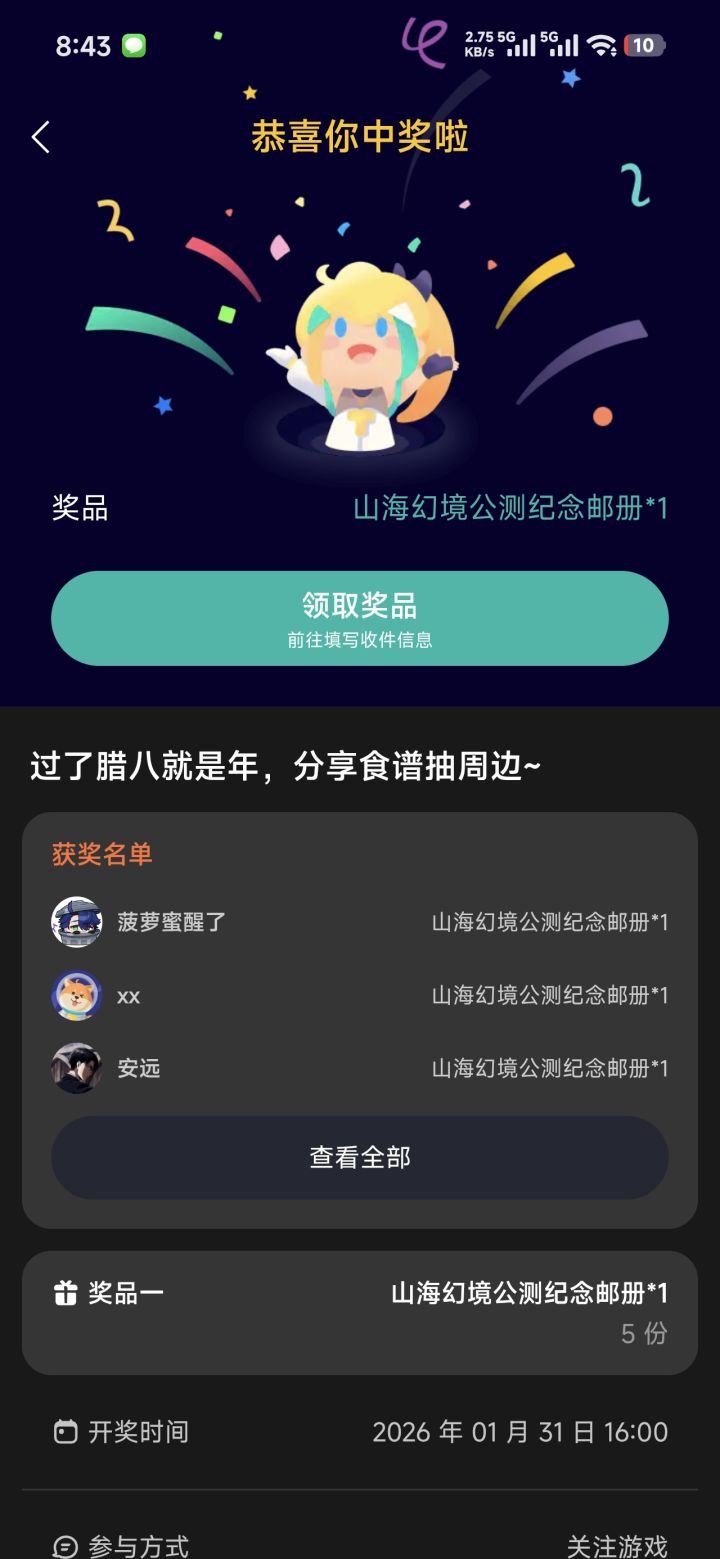 【0211停服维护说明】亲爱的天道之主:为了提供更加优质的游戏内容及更佳的游戏环境,山海幻境将在2026年2月11日14点进行停服维护,此次维护预计需要2小时,维护期间您将无法登录游戏,请您耐心等候。 服务器维护时间:2026年2月11日 14:00~16:00 (预计2小时)更新方式:停服更新维护补偿:每停服维护1小时,补偿搜神画卷*5(若延迟开服,每延迟1小时 搜神画卷*5) 补