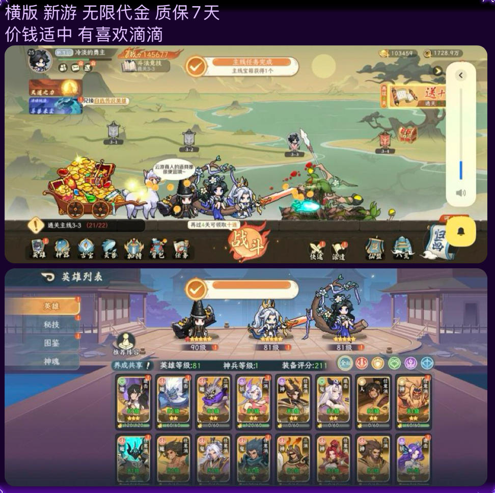 昆仑登仙出800层已经有一阵子,我是今天好不容易爬到800的,然后工会的小伙伴都想知道怎么爬的轻松,然后让我出份攻略,那我就试试,尽可能的帮助大家早日800层。首先,800层强度还是挺高的,所以必须的练度一定要有,怎么实验你练度达标呢,上个神农(我武罗练度不够,推荐武罗,武罗是农的上位替代)神器带紫雷锤,其他配置之后也会有说明,爬普通层数的时候能稳定满血通过,那么你的练度就已经够了,努力的向着8