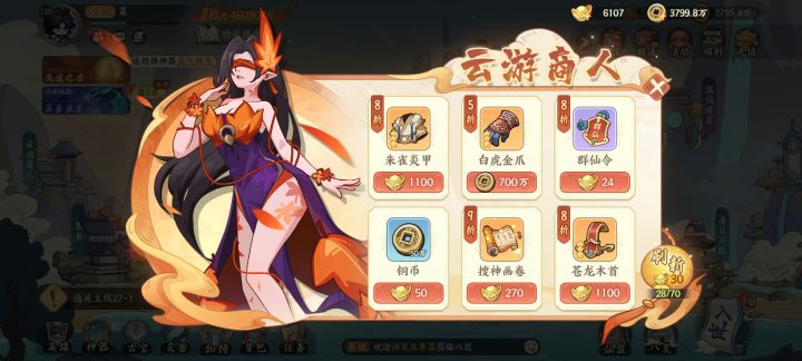 元宝主要前期护送船1800要拉满,快速战斗拉满,日常集市里精魄也要买。云游商人里只要是需要铜币购买的必买,元宝只买升阶丹,道韵晶石,战书,群仙令,召宝秘卷。搜神可以不买。拍卖行优先买练得角色加神兵,角色主要升六星,神器碎片主要买锤子,幡和山河,前期主要锤子,随机古宝能买就买,集图鉴加套装。蓬莱优先通关,最多步数三十,前16步不要元宝,里面商店升阶丹要买,灵气可买。寻宝里稿子要买,可以不挖,