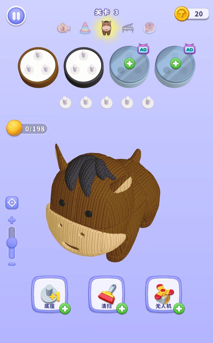 纯浪费时间,第二关玩到一半就卡关了,根本没有绿色和蓝色的毛线,逼我看广告也可以,但是你总得有广告吧,一直弹出广告没有准备好,这不是把所有路都封死了吗