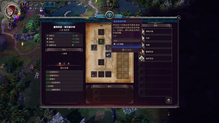 当我们在大地图上消耗完当前回合的机动点时,点击结束回合,就可以进入下个回合,然后继续行动。大地图上往往有丰富的要素供我们探索,在剧情战役里,我们进行探索的目的不仅仅是找到并完成当前章节的主线任务目标,探索行为也能为我们带来丰富的消耗品、资源、装备、兵力等,通过与NPC对话也能了解到剧情,非常有代入感。
