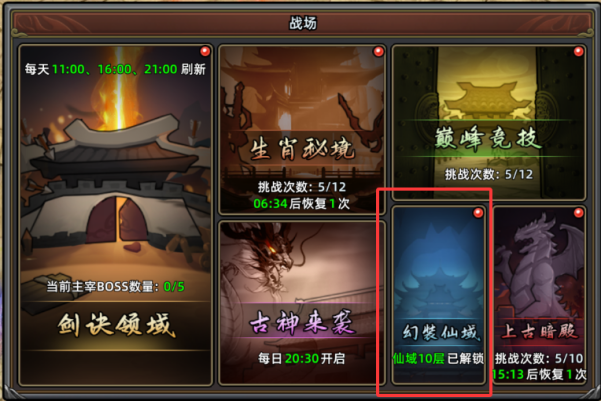 《石灵圣域》的跨服战场玩法丰富多样。 剑诀领域在每天的 11、16、21 点开放,该领域首领受固伤影响,且等级高血量多,建议玩家提前组织好行会成员一同前往击杀。在战斗中,合理分配成员职责,有负责吸引仇恨的,有全力输出的,提高击杀效率。 生肖秘境每日归属次数为 8 次,层级根据玩家转生开启,主要掉落高阶装备及生肖奖励。 玩家要根据自身转生等级选择合适层级挑战,注意合理运用技能和走位,确保在有限次数内