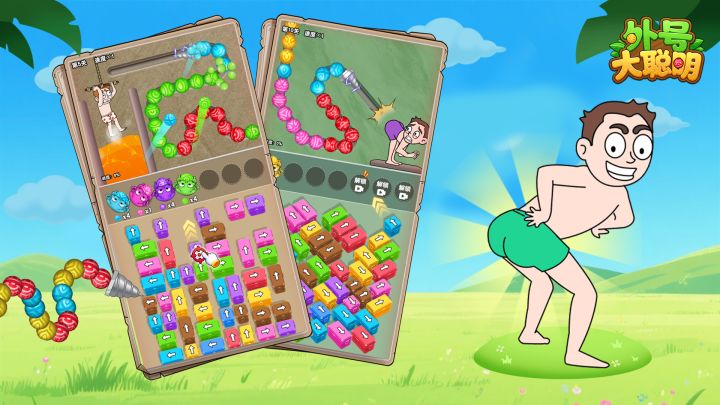 小哥又被电钻盯上啦!快用你“大聪明”的脑瓜,滑动色块,建造(可能不太靠谱的)炮台!击退钻头,消除越多,火力越猛!