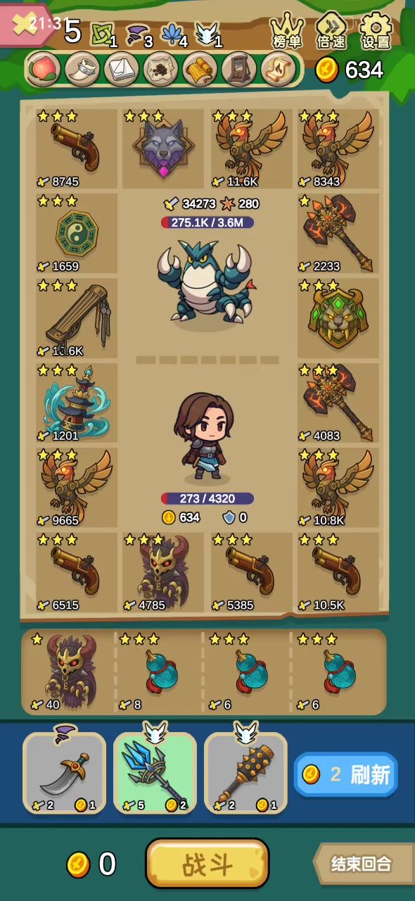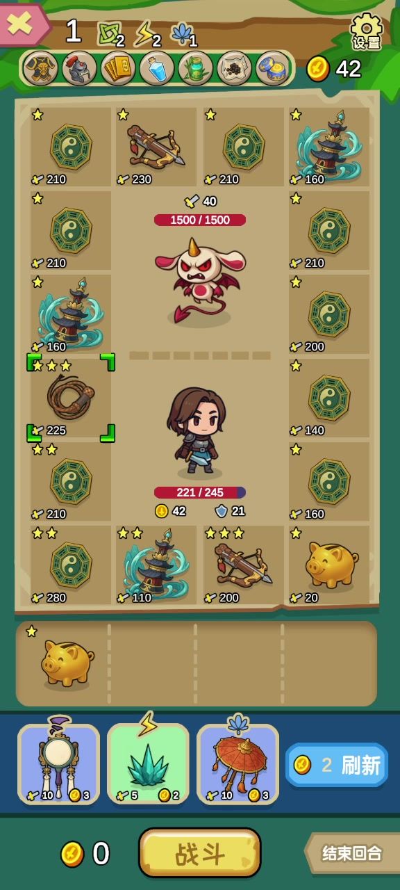 核心就是狂牙塔八卦盘。如果简单点,塔也可以不要前期靠卖血提高自己的血上限,要死也可以看广告复活。等到有两个三星八卦盘或两个狂牙就可以把卖血换掉。建议留下两个增伤,不然伤害太刮痧了,目前我这个阵容狂牙1下可以打8000多伤害。大家也可以分享一下别的流派。