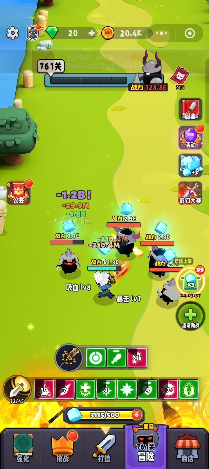 ( '▿ ' )第一关攒减攻,顺便拿几个金币盾,第二关拿掉自己血,配合金币盾牌扣一血,一直下回合,吃利息。无限刷钱需要配合买卖治疗,不如到后面的图刷后面拿到加血量的就可以一直下回合。血上限和攻击都可以加。血上限提高会回复一部分血量。无限属性和钱。再后面没想具体的搭配。扣血打伤害估计容易些。连击剑用习惯了。开局秒怪。但是重要的几点,经常卡死。不能保存。打半天等于白打。