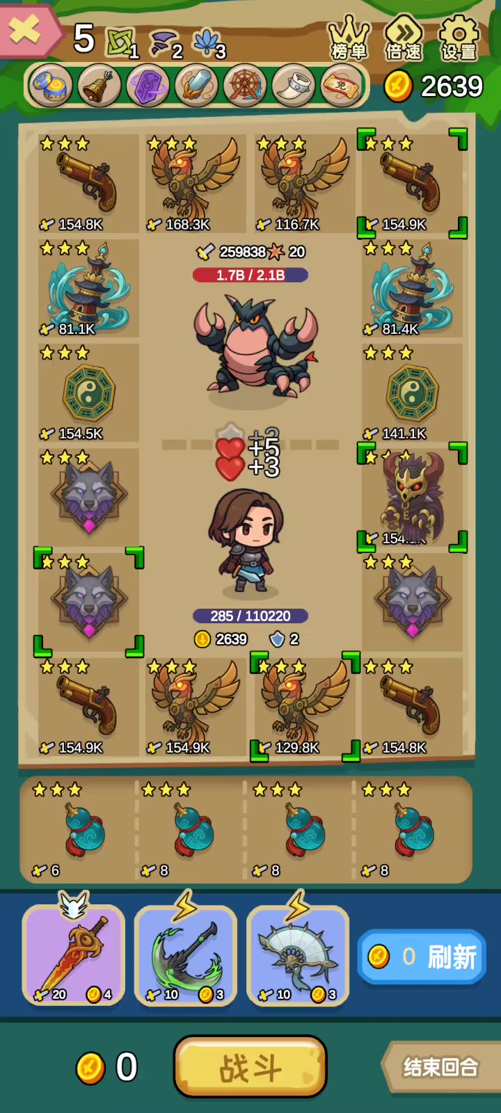 核心就是狂牙塔八卦盘。如果简单点,塔也可以不要前期靠卖血提高自己的血上限,要死也可以看广告复活。等到有两个三星八卦盘或两个狂牙就可以把卖血换掉。建议留下两个增伤,不然伤害太刮痧了,目前我这个阵容狂牙1下可以打8000多伤害。大家也可以分享一下别的流派。