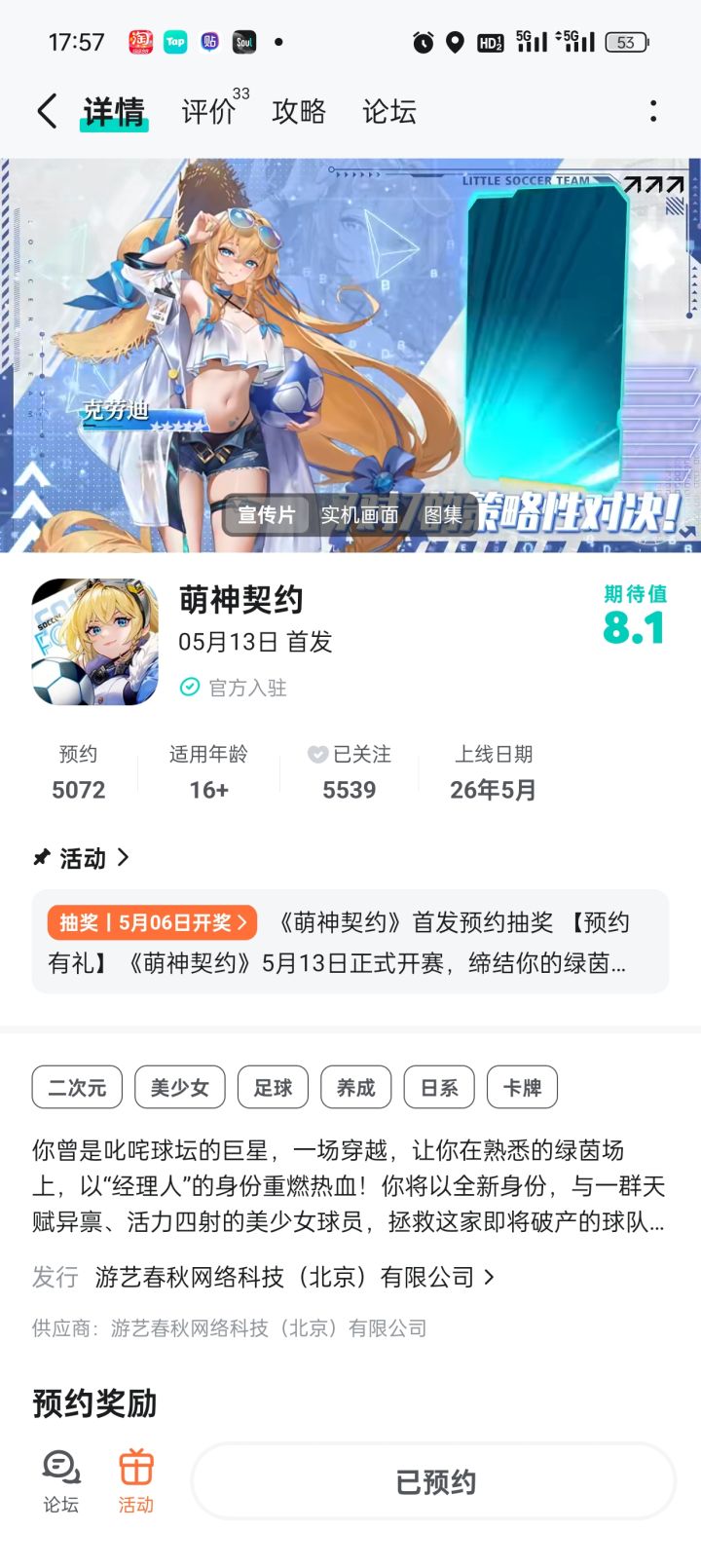 【预约有礼】《萌神契约》5月13日正式开赛,缔结你的绿茵契约!