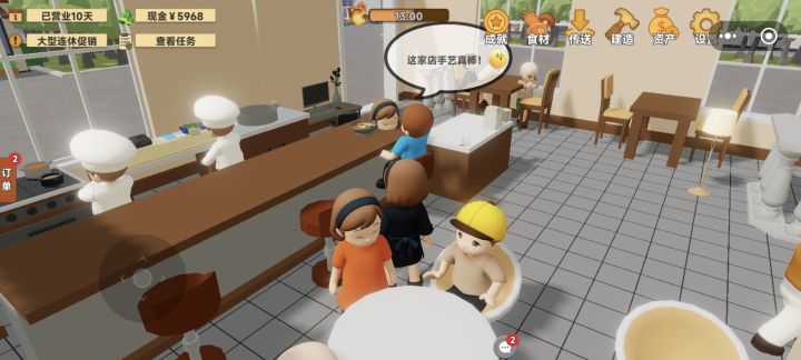 闪退太严重了,玩了三天,全程耐着性子玩,每次登录游戏闪退五次,游戏页面都没出来呢,要么就是刚选完多人游戏,一直闪退个5次吧左右,有没有人跟我一样,还有我明明有菜为什么上面还显示缺货,有小麦60多个,但是却显示缺货,就是能不能游戏说的明白一点,反正我没懂,还有就是穿透,你自己看看阴不阴间,5天玩完了,就是给店面升级四星五星的,不知道怎么升级了,它显示我全都满级了,然后又要升级,真不知道从哪升级,就是之前截的图,头都直接穿了笑死了,上了个头菜,还有就是我都跑过去接单了,那服务员还跑过去,然后站那不知道干嘛,NPC直接隔着墙穿过来,还有呢NPC也是挺搞笑的,我店里忙活呢,就听到外面一直有滴滴的车子响,如果出去是两个傻的挡着呢,我还得过去给他们拆散,车才能走,但是!这种3D的做饭游戏挺好玩的,希望多多改善,这种模式的的游戏太少了,加油啊