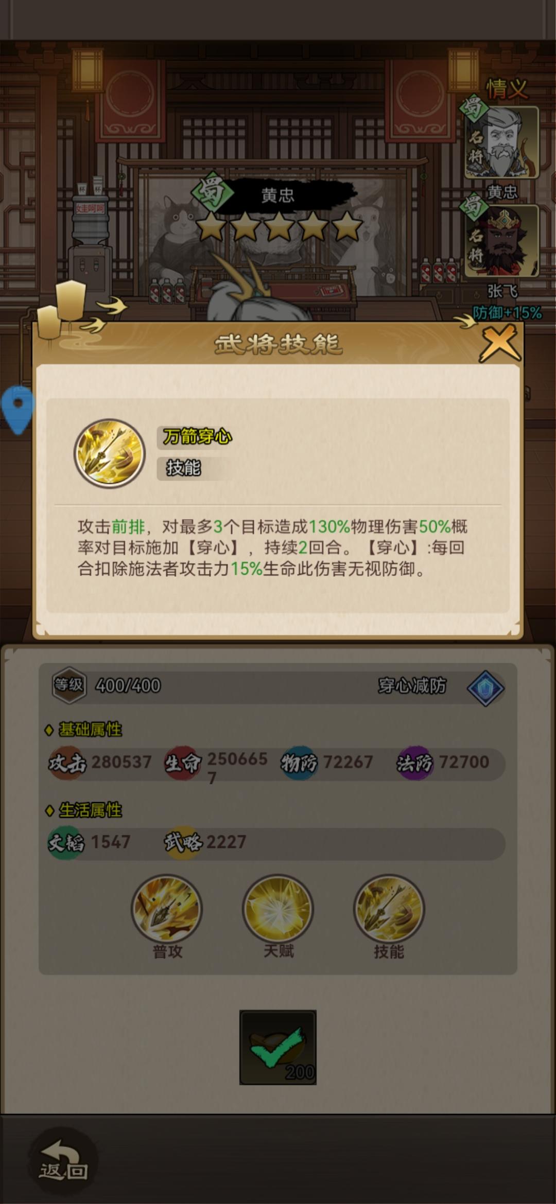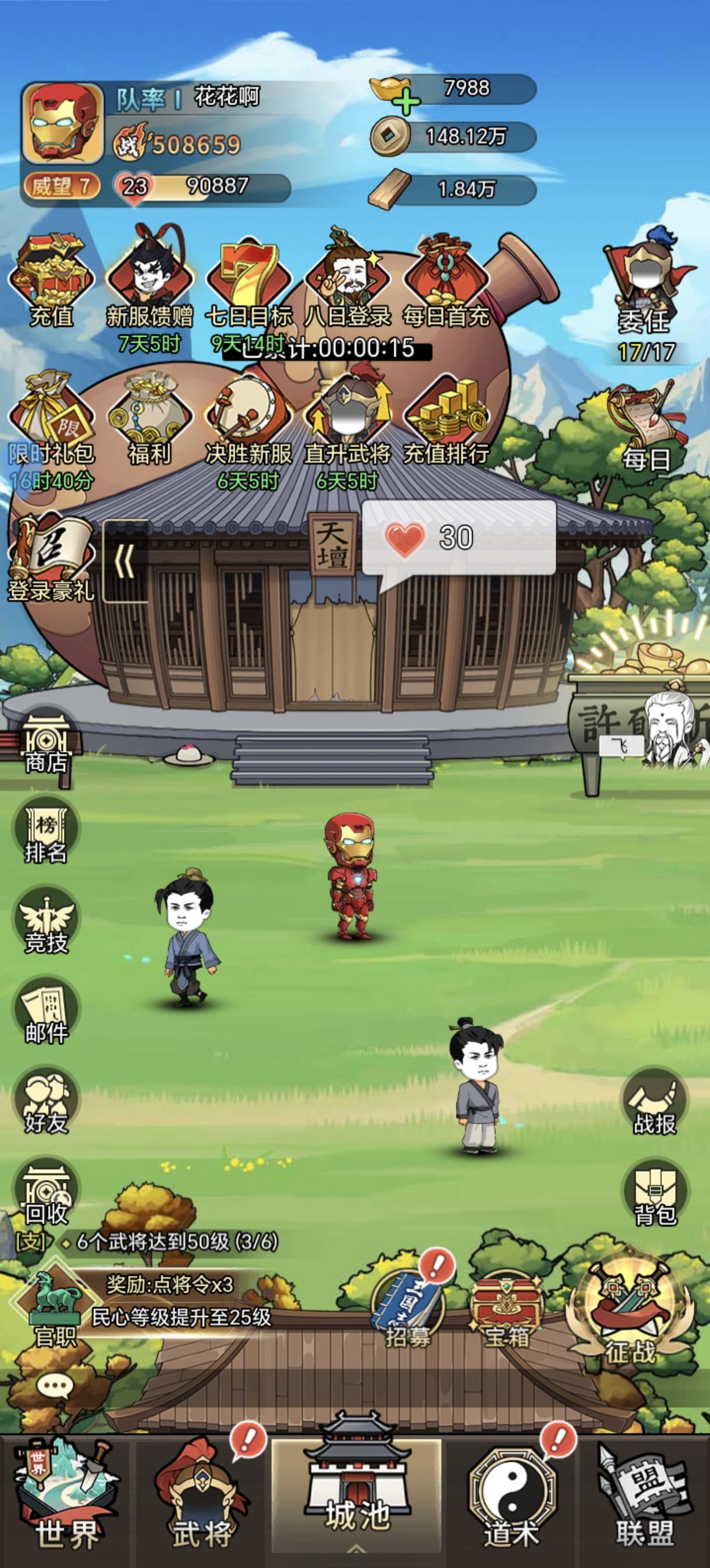 总结一下游戏攻略: - 战斗玩法:游戏有剧情模式、远征战场、演武场、对战模式等。剧情模式共有九章,每章四小关,每关有三种难度,挑战成功后可扫荡。远征战场有30小节关卡,通关可获得资源。演武场可进行60秒一局的无双PK。对战模式虽非实时在线,但可与其他玩家数据对比。 - 建筑与资源管理 :第一天木板紧缺,按主线升级建筑,升级后立刻委任加成最高的武将。第二天起优先升级矿石类建筑,委任顺序为铁矿锻造>挖