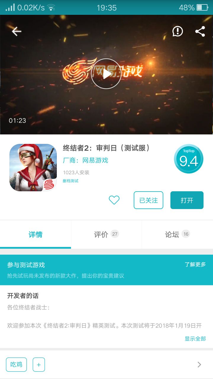 各位终结者战士:欢迎参加本次《终结者2:审判日》精英测试。本次测试将于2018年1月19日开启,届时获得测试资格的玩家将可以在“精英测试服”进行游戏,体验全新的大地图玩法。本次测试游戏中的画面表现和玩法设计不代表最终效果,我们将在后续制作开发中不断完善。如玩家在游戏中遇到问题可通过终结者2游戏客服专区或者官方论坛进行反馈。为了满足新版本测试的需要,本次测试需要各位测试玩家下载测试版本安装包并使