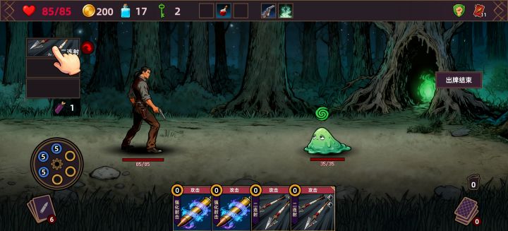 角色莉莉安因为她7个弹夹;虚弱1滴血进图,王者玩的是卡牌和附魔都属于运气,血量没太大意义;一般进图不远就有附魔,战术卡牌重新填装没有回收就主动下一局; 我这局运气的遇到删除卡牌选项不多,所以只能用另类的代替——附魔保留;3张快速抽取; 小技巧:每个商店删除卡牌都是金币30→60→120,⚠️注意是每个!而不是统一商店。;能力卡牌可叠加!;虚弱1滴血进图后找资源碰运气,没有就右上角下一把;#猎人