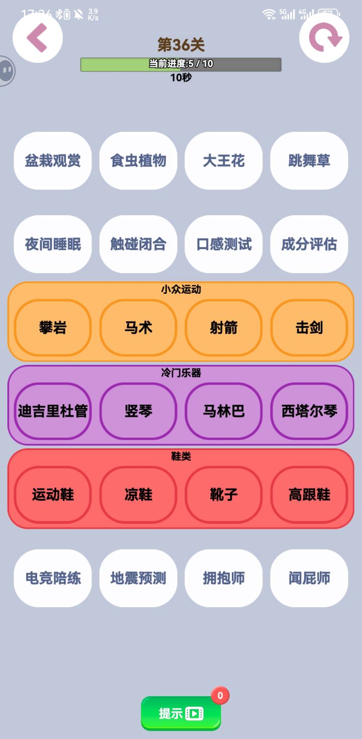 词语分类49我之前都通关了,然后又让我玩一次,分类到专业的完全不懂到底怎么分的。就单纯是让看广告!已经想卸载了!其他的类型就有时候卡卡卡的