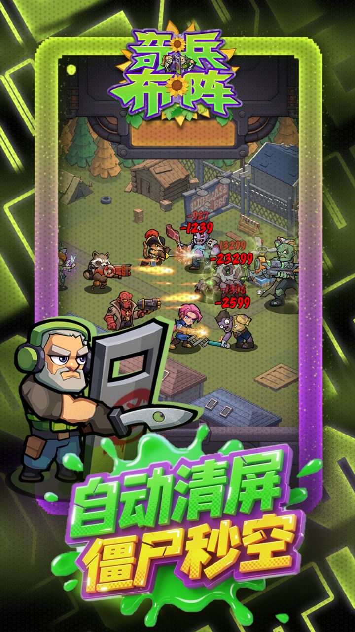 亲爱的幸存者们:大家好!我们是《奇兵布阵》的开发小队。这是一款主打“轻松挂机 + 爽快爆装”的末日生存游戏。⚔️游戏是什么风格?不是无脑点怪的挂机数值堆叠,也不是拼命爆肝的废土求生!你将在被病毒淹没的废墟城市里,招募各路奇兵,抵御汹涌的尸潮;转眼又能进副本打BOSS、收集木板修建末日设施,甚至挑战全球竞技战力榜!在这里,策略布阵的脑力爽感 + 放置刷宝的轻松节奏,让你挂机也能嗨到飞起