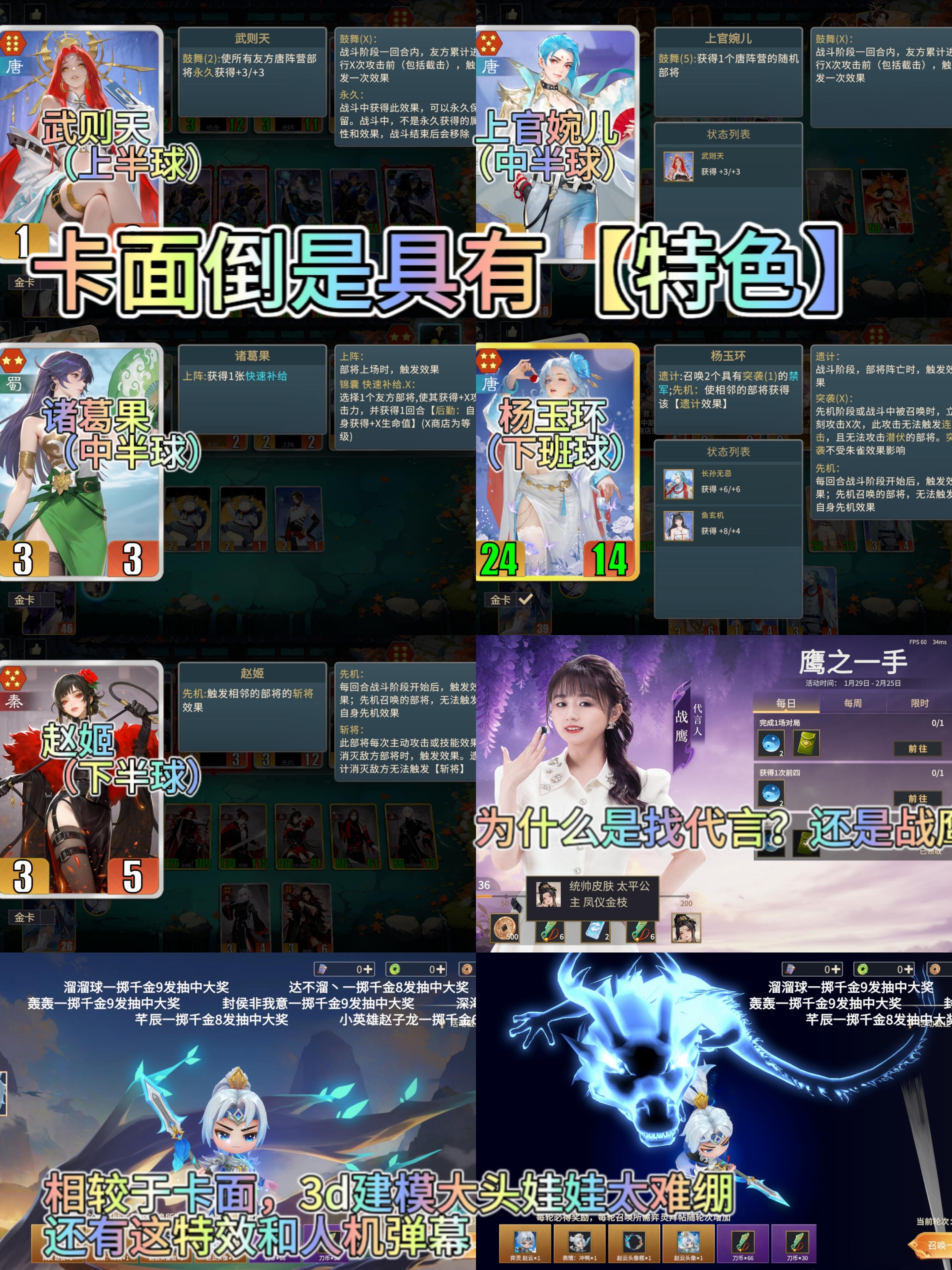 千机阵-甄姬 : 感谢反馈,您提及的美术相关建议,我们已经收集到建议并且反馈调整了,您提到的配音、金卡银卡技能描述、以及活动问题,我们都已经认真记下来,并且会尽快整理给策划和开发团队进行评估。