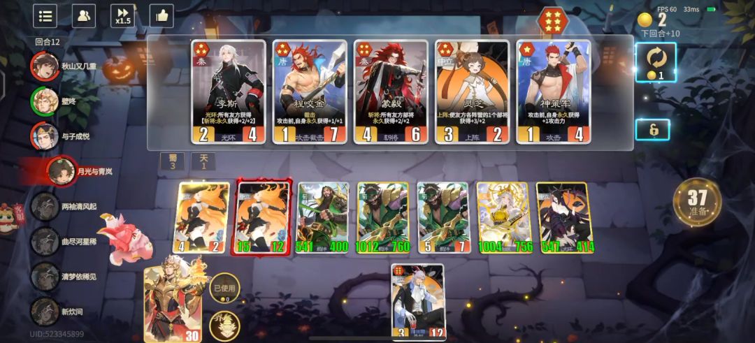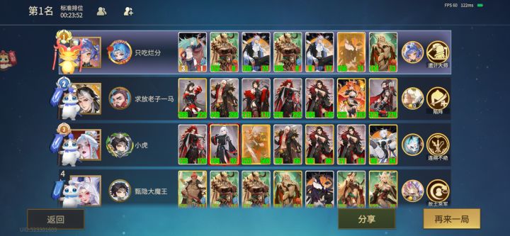 #千机阵 刷了近两个小时,刷麻了,主要难点是开局不好刷,中期很难平局,后期手速不够。感觉暂时许褚很难刷到更高了。总结一下要点好友对战养猪秘诀:统帅选曹植,开登台赋;通过平局延长回合数;谛听互补关键牌;钱基本花不完,靠手速狂刷;最后将两个许褚兼并到一起