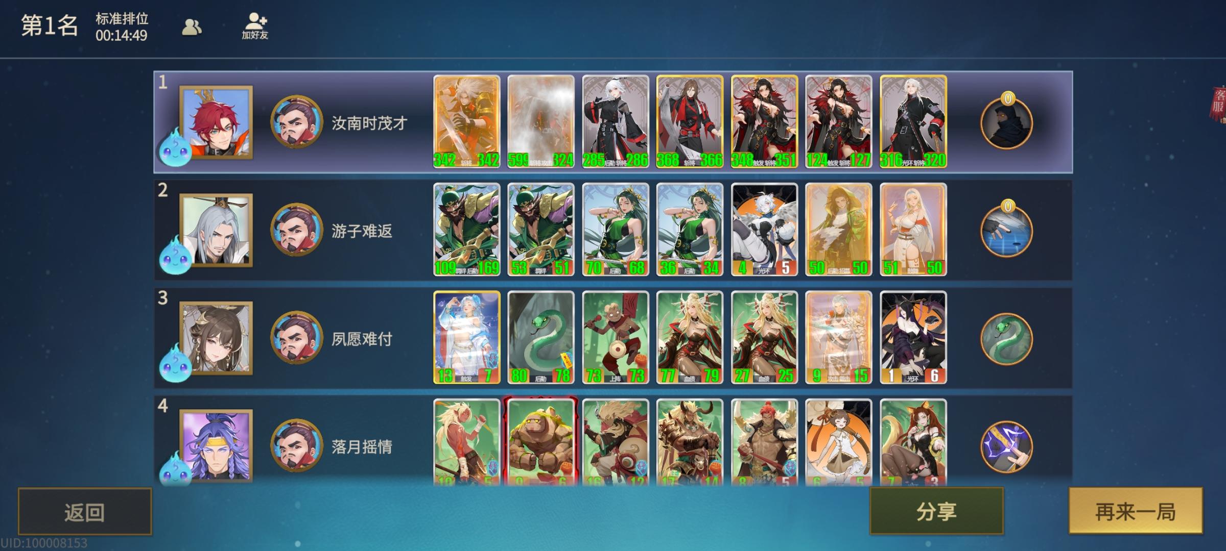 这次二测时间非常充分!榜三三位也是真的肝!恭喜睡觉定榜榜一!祝贺南某梦璐也是成功拿下前三!这次测试一起天梯的玩家也好,经常组局的阵友们也罢,还有积极参加比赛的诸位朋友们,很开心和你们在游戏里相聚一堂,希望下次测试还能有你们的身影!在此预祝千机阵三测顺利,希望咱们有机会三测再战!