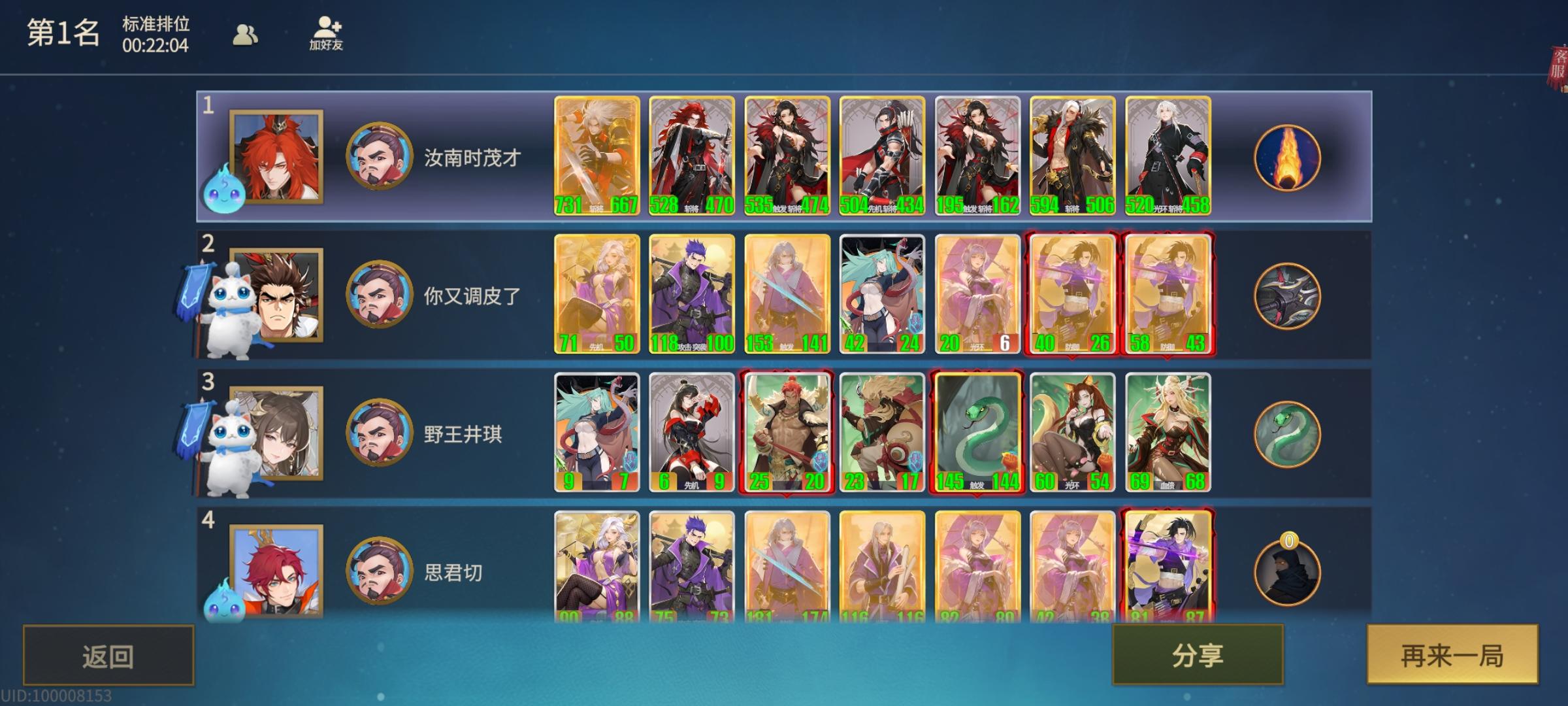 书接上会,下面讲的是体系牌:唐:唐是过渡最顺滑的阵容,从 2 星到六星都可用到底。(可多张上场看情况,把秦琼放到右侧倒数第二,后边放一个护卫,可大概率触发截击,增 加自身属性,触发武则天被动) 可替换上面牌的卡牌补位 辅助牌: 高力士:给唐卡加连击和属性的牌,优先给李白或属性较大的牌。 夜巡和日巡:可给武则天加护卫放到秦琼或程咬金后边触发截击。 推荐阵容: 最理想阵容:最后一张武则