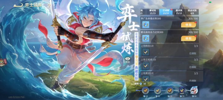 卡了十多天的霍去病和李广,竟然在刚升传说的第一局就阴差阳错地完成了,孙权+界蒙毅果然好刷。先在把李广养到300,卖了之后又极限把霍去病养到150,可惜白虎没金,要不然不会这么极限。心力交瘁的一局,既得防止自己被打死,又得防止对手被自己打死,和蜀国磨了三回合,决赛时霍去病刚到150,上不了相柳果断让鸡了
