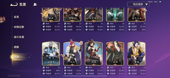说一些个人对排位的看法。感觉排位分段间隔分数设置的太多了,感觉目前上分除了需要技术外,更多的是要靠肝。举个例子,目前百分之九十以上的前四率打到钻石二,发现竟然已经打了一百多场。个人认为,如果在某个分段胜率百分之五十六十左右,那这个分段是符合自己水平的,同时也能体验到对抗的乐趣。但是由于上分所需要的分数实在太多,想要有更多的对抗的体验的话,目前只能不停的肝。我看排行榜的上的都是有几百场次的,那么想要