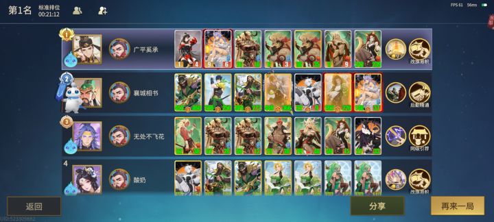 打了不少把了,有了些经验,给萌新玩家们说说,看着乐就行首先,这个游戏的组合很多,人人追求天胡,但,一些众所周知的事情就是,牌库是有限的,也就是说,同一张卡在牌库里的数目是一定的,所以很多都说“没有同行做起来不难”但这里有个小小的把戏。其他人可能没有同行,但不代表你不能当他们同行。速五可以打速攻,但速六最大的好处,是卡人。部分阵容第三回合就能判断大概,卡关键牌——比如诸葛亮,