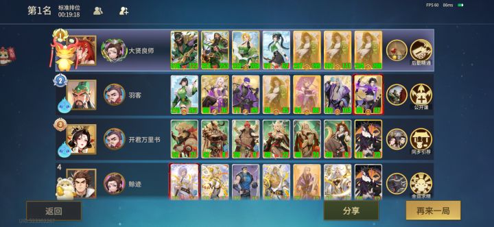 我正在跟第四名相互加战力,给他秦琼养到600战,最后我赢了直接提示第二名,他输了是第四名,莫名其妙的感觉。