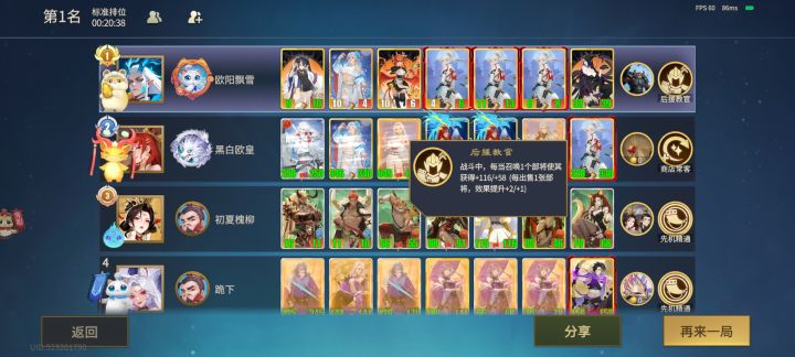 统帅名称:【鬼谷子】统帅技能:【纵横】:开局时,获得一个部将【鬼谷学徒】(商店2/4/6级挑选进化) 衍生技能:【合纵1】你的【鬼谷学徒】获得后勤:所有部将获得+1生命,2级商店 【合纵2】你的【鬼谷学徒】获得羁绊:所有部将获得+1攻击,4级商店 【合纵3】你的【鬼谷学徒】获得回营:挑选2张【募集】类锦囊(募集后勤、募集先机、募集遗计、募集护卫等),6级商店 【连横1】你的【鬼谷学