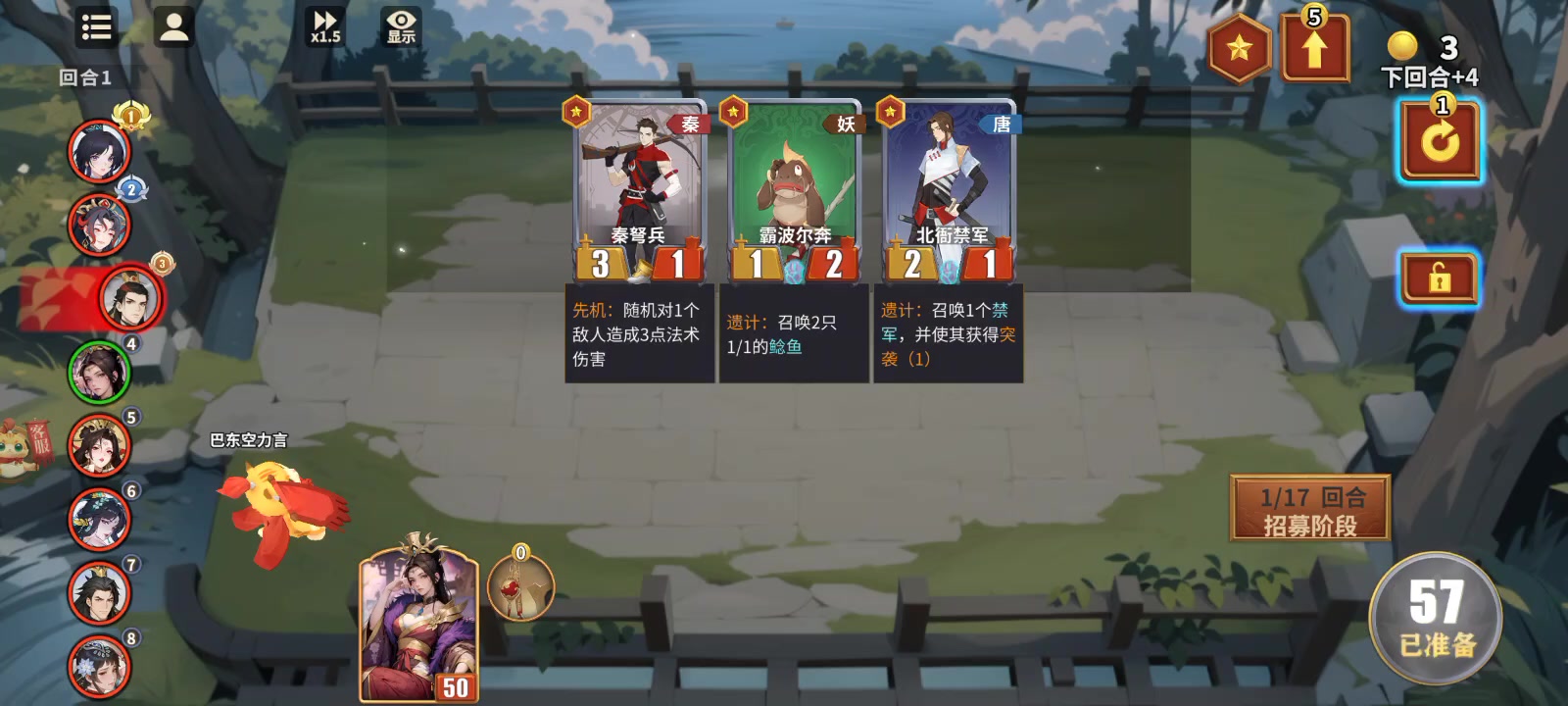 对手刘彻9回合金王昭君、两个护盾卫子夫,加一个吕后。而我第12回合才拿到第一张卫子夫,而这时的属性差不多只有刘彻的一半。最后通过功能卡针对,连赢三场吃鸡。