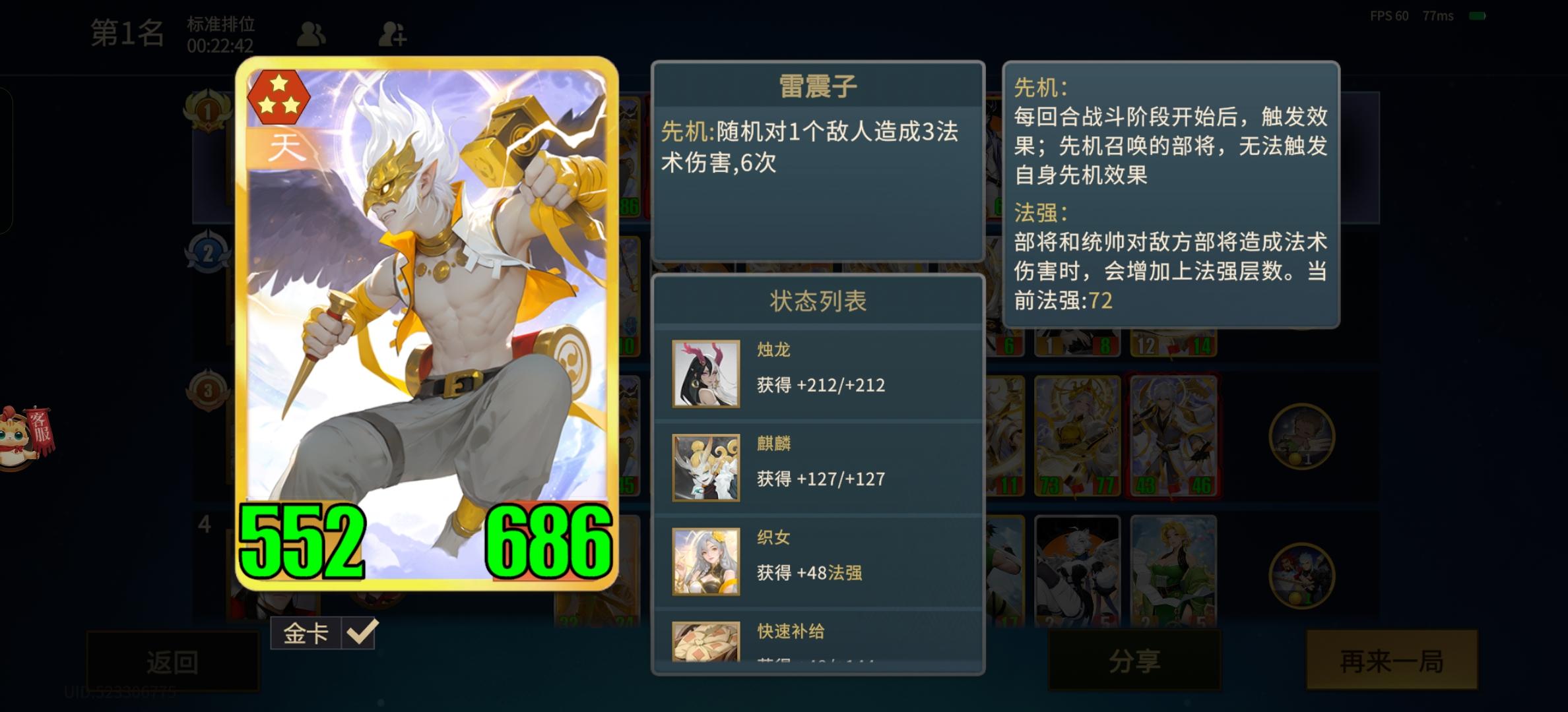 最强单核卡牌唯有一张牌,甚至不是高本卡而是#千机阵雷震子!!!养雷震子好处多多,如下:1,先机是这个版本最重要的制胜手段,在开始战斗时通过触发先机一波乱杀清场不要太爽,而在先机角色中唯有雷震子拥有一号位秒全场的能力。2,天内战不惧任何其他天角色,版本当道,玩天的人很多,但是用天养身材不太给力,远不如把雷震子当核心养的身材大,抢到先手一波乱杀对面玄武死了也基本上就废了。3,不好针对,就算
