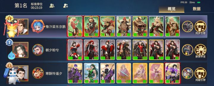 终于宗师了,算是勉强摸到高手门槛了吧期间停留最长的是钻石分段,当时不怎么会玩,基本每把都是第3第4,一把老8一天白玩。后面会玩了之后上分反而简单了不少。以下记录了最近20把的数据:平均名次2,登顶率50%,前四率95%(名次-统帅-阵容-谋略)1-曹植-后勤魏-魏征兵2-关羽-后勤蜀-先机精通1-项羽-跳操唐-遗计精通2-孙武-双龙会-寸有所长2-敖广-烟花蜀-上阵精通1-李靖-