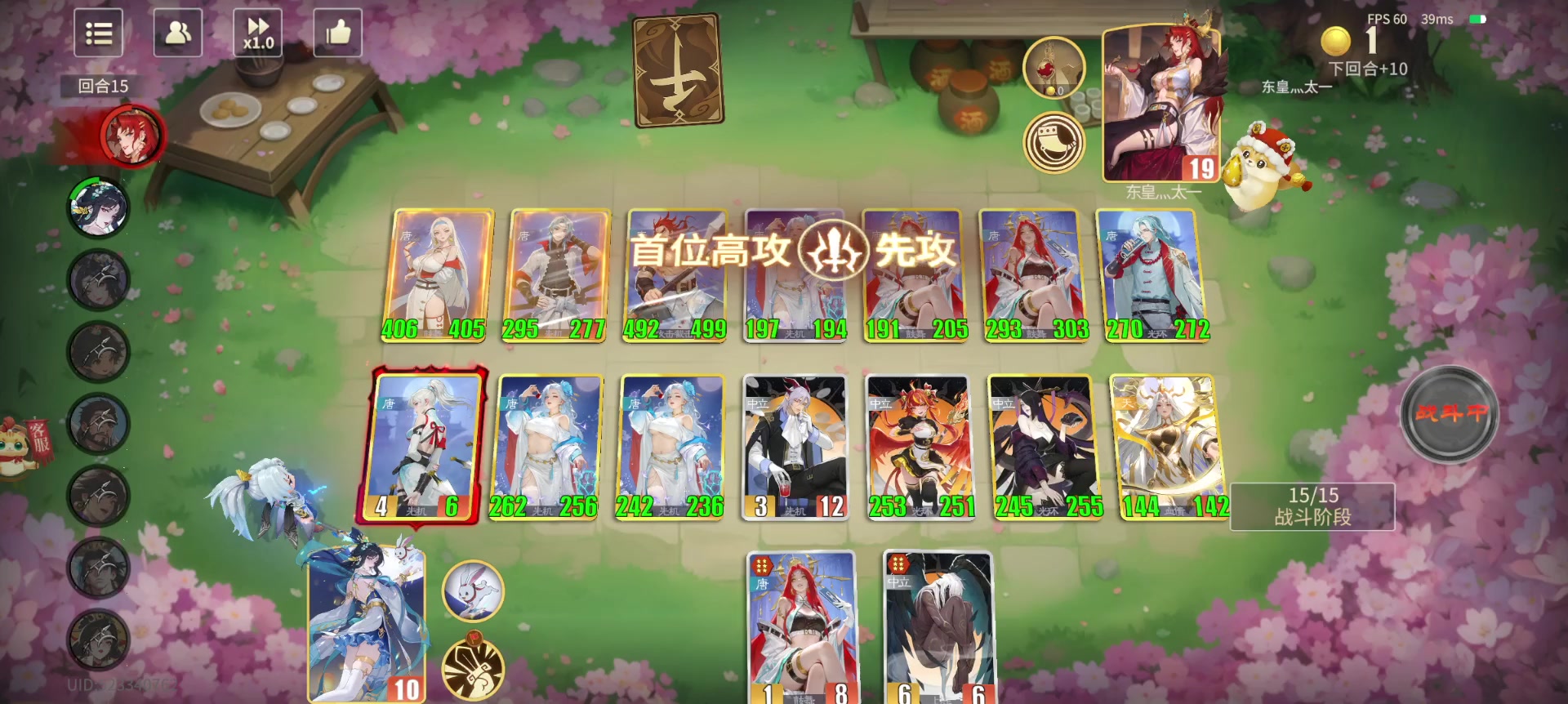天阵容玩法按照图中摆放,重要提示:饕餮使用白色饕餮,不能使用金色饕餮自定义配阵只能设置金色首先介绍四个阵容的特点及伤害计算:九天起舞阵:先机从左往右触发,1、杨玉环激活先机,嫦娥饕餮获得6个召唤物,自身两个召唤物,2、白卡饕餮触发先机吃掉嫦娥杨玉环,获得他两的遗计,一共8个召唤物,饕餮身上累计14个召唤物,并触发前面的召唤物开始释放,8乘以玄武次数3一共24个加本体2个,初始法强嫦娥提供12点