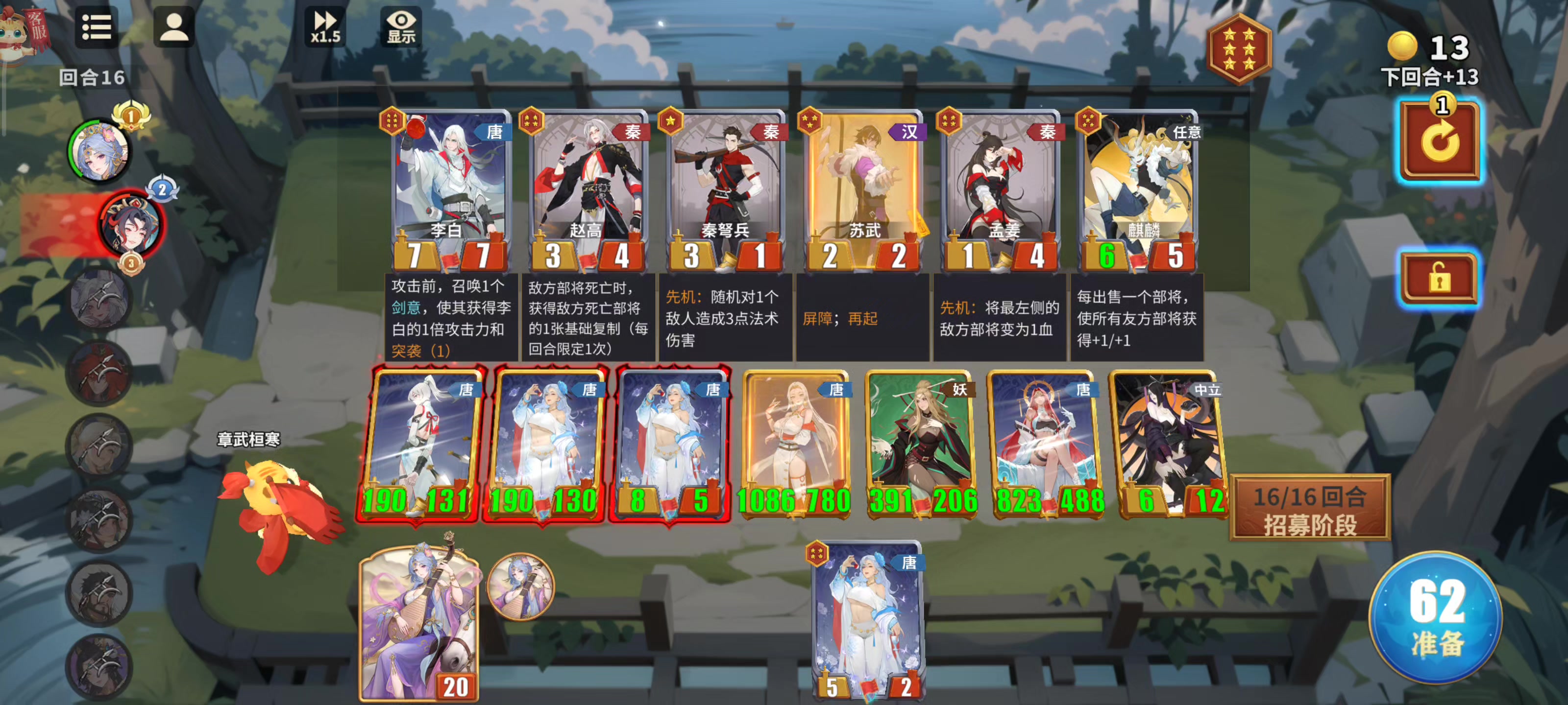 玩了几局,先上图,总结一下,目前阵容差距挺大的,逐个分析各阵容优劣,妖不说了,5个种族除了妖以外都能玩,妖不太行,缺少核心倍率牌而且还卡格子,想不卡格子就得少上,少上就是后手,那你遇到玩秦的你不是炸了嘛,再说遇到会玩的根本打谁都打不过针对之前内容有部分没讲清楚,做出一些调整以及建议,妖还是那句话,不太行,卡格子加没有核心倍率,而且唯一的倍率玄武还不太需要,决赛能赢的几率并不高,你目