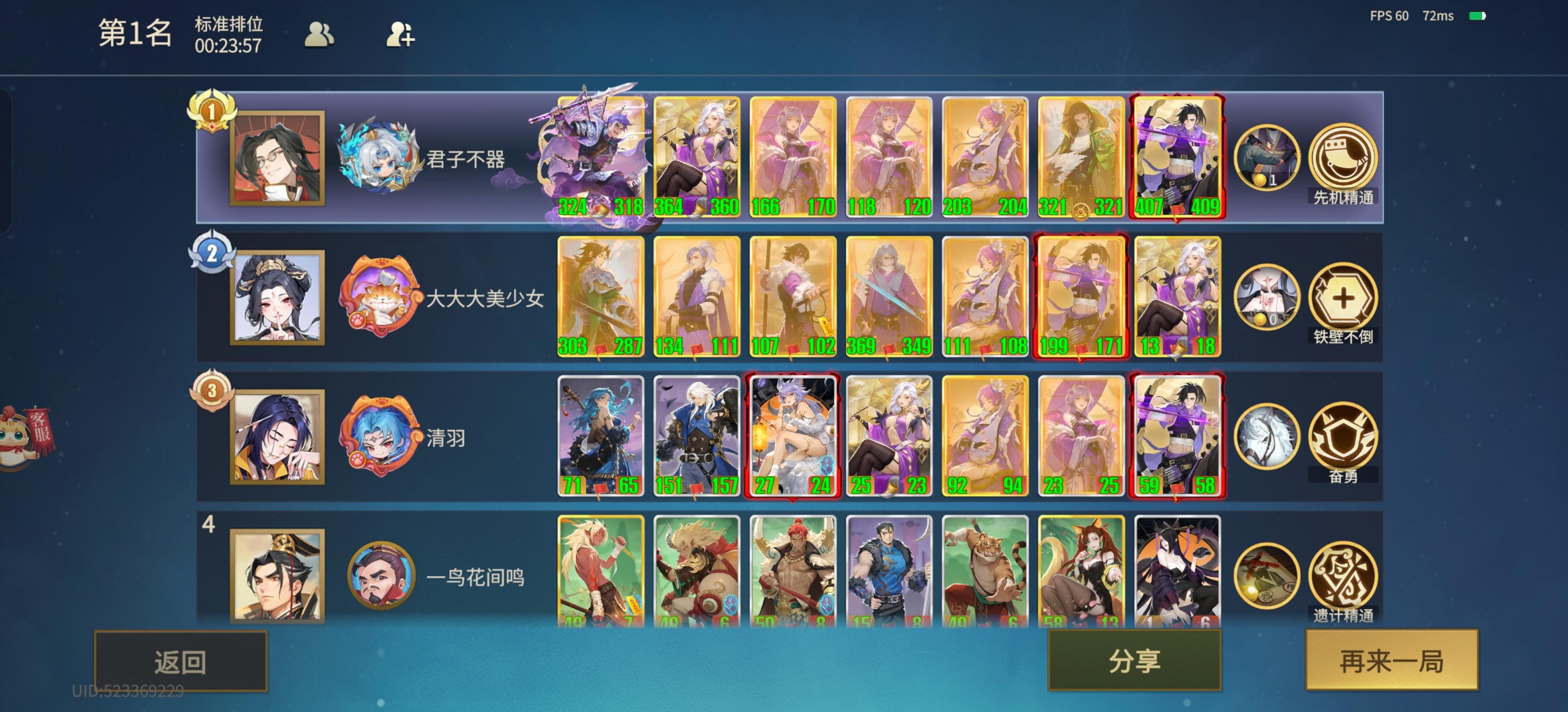想走遗迹天的,结果核心哪吒全局隐身,没办法只能靠杨戬这大腿了,配上张角和二技能直接稀里糊涂的赢了!这阵容是不是拉到了极致,我都以为已经必死了!没想到最后三回合电闪雷鸣,直接熬了三回合第二的火力输出居然赢了!这家伙但凡最后两回合把白起换个位置,随便换个人突我杨戬我都是必死局啊,愣是三回合都不带换一下位置的,真的头铁。不过电闪雷鸣的特效是真的有趣