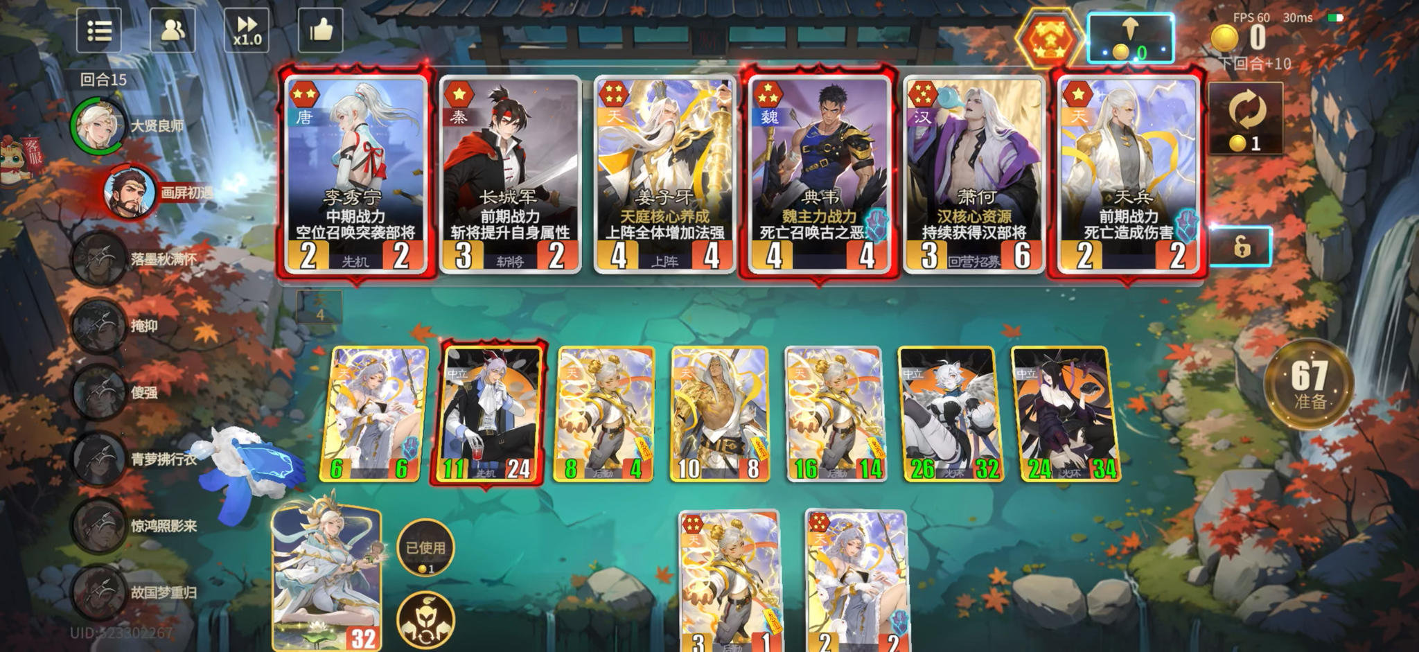 中立1.朱雀新增卡牌朱雀,效果为:友方部将先机效果触发2次(多个朱雀上场时,取最高效果),金则为3次。其他变化不大这个赛季新增一个阵营天,原本的黄巾天:1.电母新增加的部将,战斗开始时友方和统帅法强+1(对于张角来说前期不如霸波尔奔,尤其是第一回合)。2.巨灵神相比原本在黄巾时增加了一个,随机对1个敌人造成2点法术伤害,不错的加强。3.雷震子原本在黄巾时的遗技改为了先机,但是