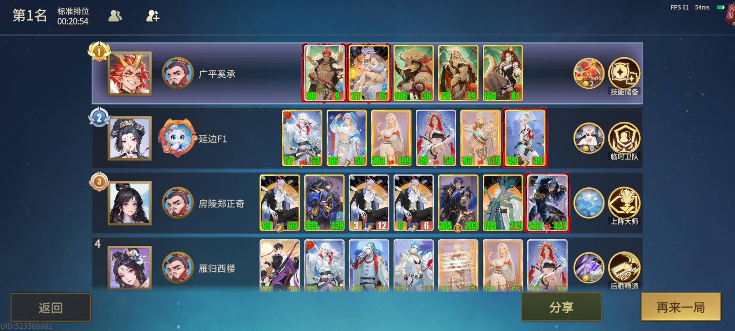 先说几个老阵营一、汉:荣光盾吴移植,牢秦最严厉的父亲,但相比盾吴,做了极大的加强,首先是霍去病(荣光孙策)增加了突袭效果,让汉不再是蹲坑打呆仗的呆瓜阵容,能够在先机阶段就打乱一些阵容的阵型。东方朔能够给汉角色永久加盾,让李广保底抗四下,化身不倒长城,比荣光周泰还能抗。还有赵云这个强力外援,在汉阵容中赵云身材能轻松破千,这是盾吴想都不敢想的事,这里说说吕后,很多人都不理解吕后这张卡的真正逻辑,这