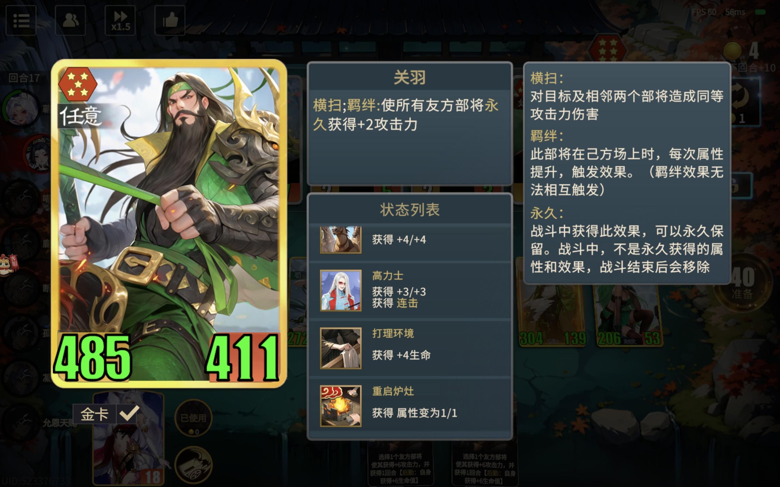 先说几个老阵营一、汉:荣光盾吴移植,牢秦最严厉的父亲,但相比盾吴,做了极大的加强,首先是霍去病(荣光孙策)增加了突袭效果,让汉不再是蹲坑打呆仗的呆瓜阵容,能够在先机阶段就打乱一些阵容的阵型。东方朔能够给汉角色永久加盾,让李广保底抗四下,化身不倒长城,比荣光周泰还能抗。还有赵云这个强力外援,在汉阵容中赵云身材能轻松破千,这是盾吴想都不敢想的事,这里说说吕后,很多人都不理解吕后这张卡的真正逻辑,这