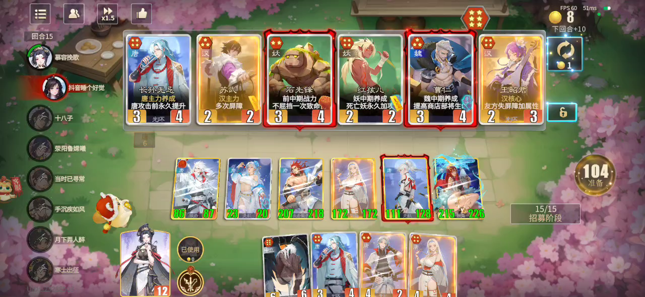 成型阵容(注意饕餮不要金): 李秀宁 杨玉环 朱雀 饕餮(嘲讽) 玄武 九天玄女 白骨夫人。变体: 选到双先手/双亡语时,可以放弃朱雀/玄武,换成饕餮。没有妖/找不到白骨时,可以拿太白换白骨。中期:过渡卡: 婉儿、鱼玄机、太平、无忌、瑶姬过度卡主要在四五费,核心卡也有一张四费三张五费。建议跳到四本,d两回合,见到杨玉环再升本。然后五本继续找,尽量找到朱雀玄武白骨三选二,再升本。压力小
