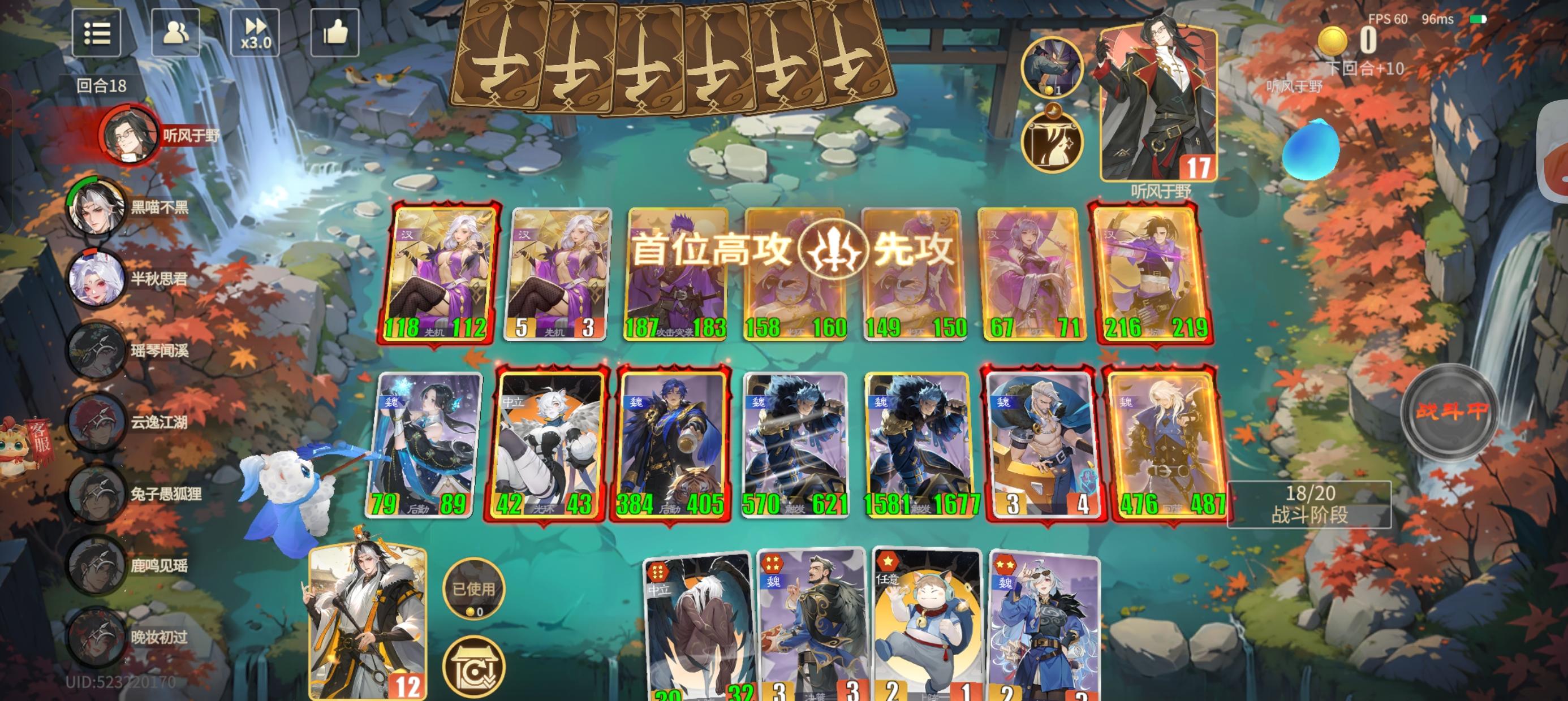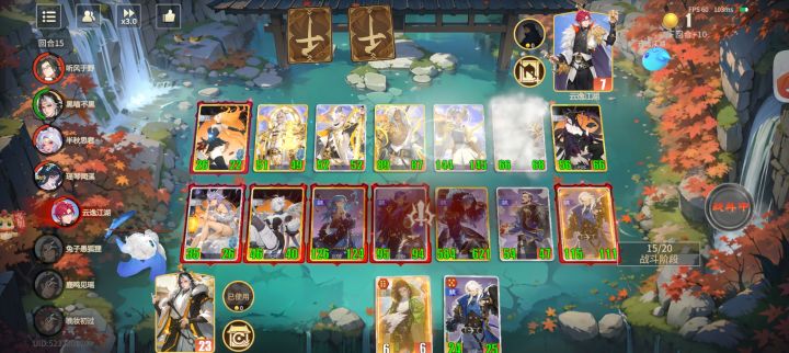 第9回合许褚(能玩),第13回合荀彧(整体上身材能玩),第15回合九尾(每回合可以多刷一张牌了,能玩),第18回合来甄姬,20回合结束#千机阵