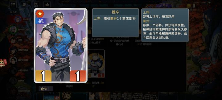 统帅名称:【鬼谷子】统帅技能:【纵横】:开局时,获得一个部将【鬼谷学徒】(商店2/4/6级挑选进化) 衍生技能:【合纵1】你的【鬼谷学徒】获得后勤:所有部将获得+1生命,2级商店 【合纵2】你的【鬼谷学徒】获得羁绊:所有部将获得+1攻击,4级商店 【合纵3】你的【鬼谷学徒】获得回营:挑选2张【募集】类锦囊(募集后勤、募集先机、募集遗计、募集护卫等),6级商店 【连横1】你的【鬼谷学