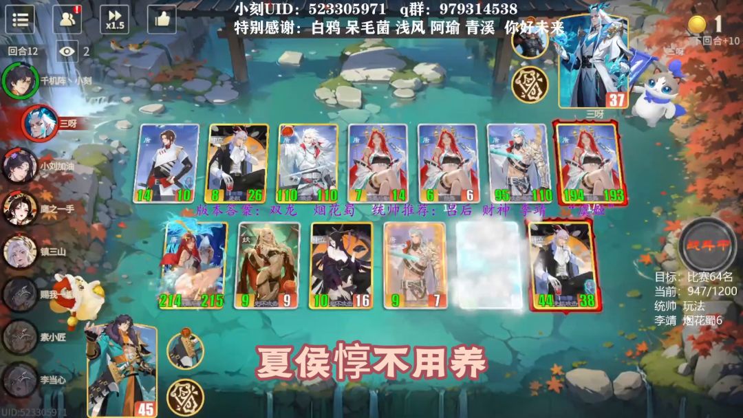 终于宗师了,算是勉强摸到高手门槛了吧期间停留最长的是钻石分段,当时不怎么会玩,基本每把都是第3第4,一把老8一天白玩。后面会玩了之后上分反而简单了不少。以下记录了最近20把的数据:平均名次2,登顶率50%,前四率95%(名次-统帅-阵容-谋略)1-曹植-后勤魏-魏征兵2-关羽-后勤蜀-先机精通1-项羽-跳操唐-遗计精通2-孙武-双龙会-寸有所长2-敖广-烟花蜀-上阵精通1-李靖-