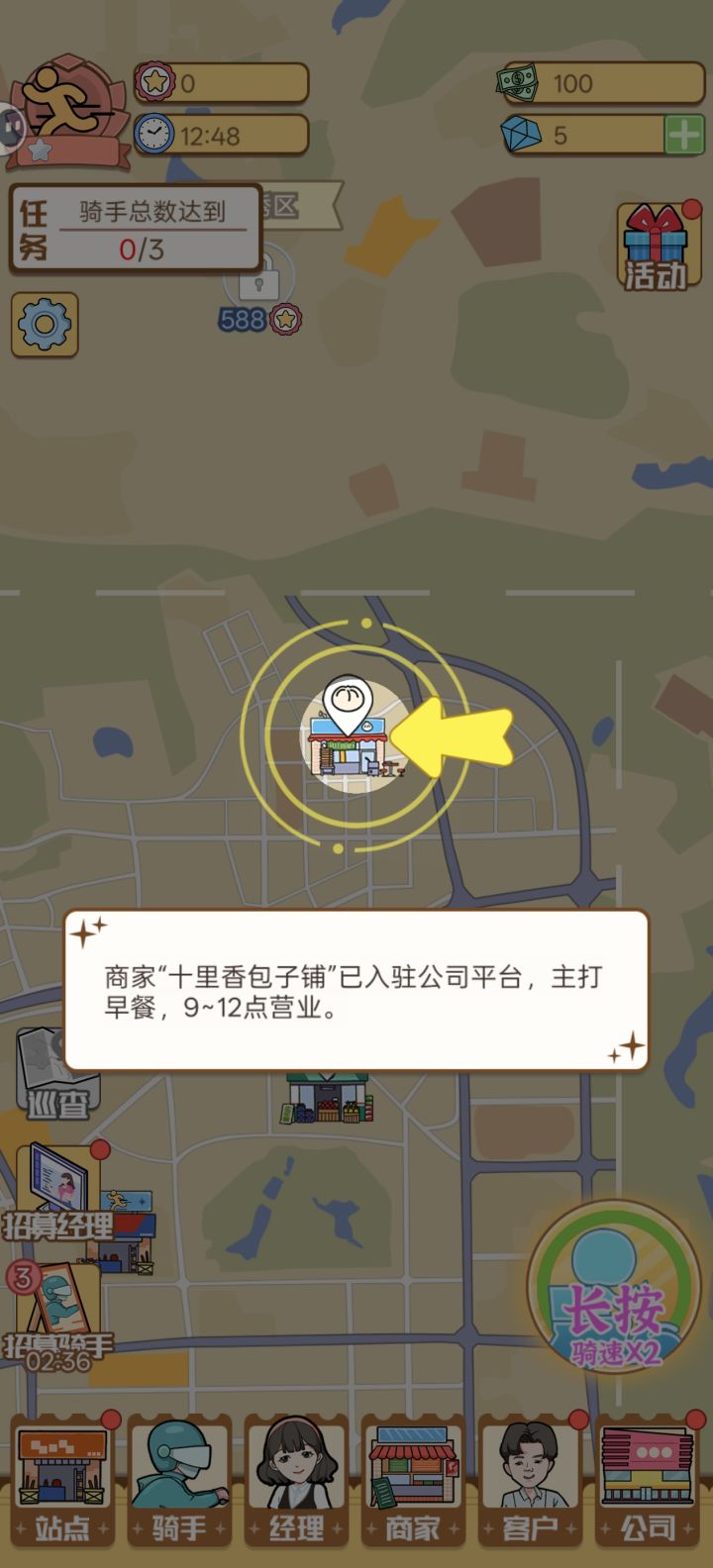 清相册发一下通关纪念图,可惜最终还是没能拿到全10,但也不想看广告刷了。这游戏不需要攻略,不追求完美(全骑手10级)的话甚至不需要看广告。虽说是经营外卖站点但无策略要素,跟着左上角的任务一直点点点就行,缺钱就退出挂机,睡一觉起来就有钱了,缺骑手就有事的时候把手机放一边挂十几分钟。没有故事线,骑手特殊剧情触发概率很低,而且内容很少,总之比较无聊……总体评价是一款很平淡无味的挂机游戏。