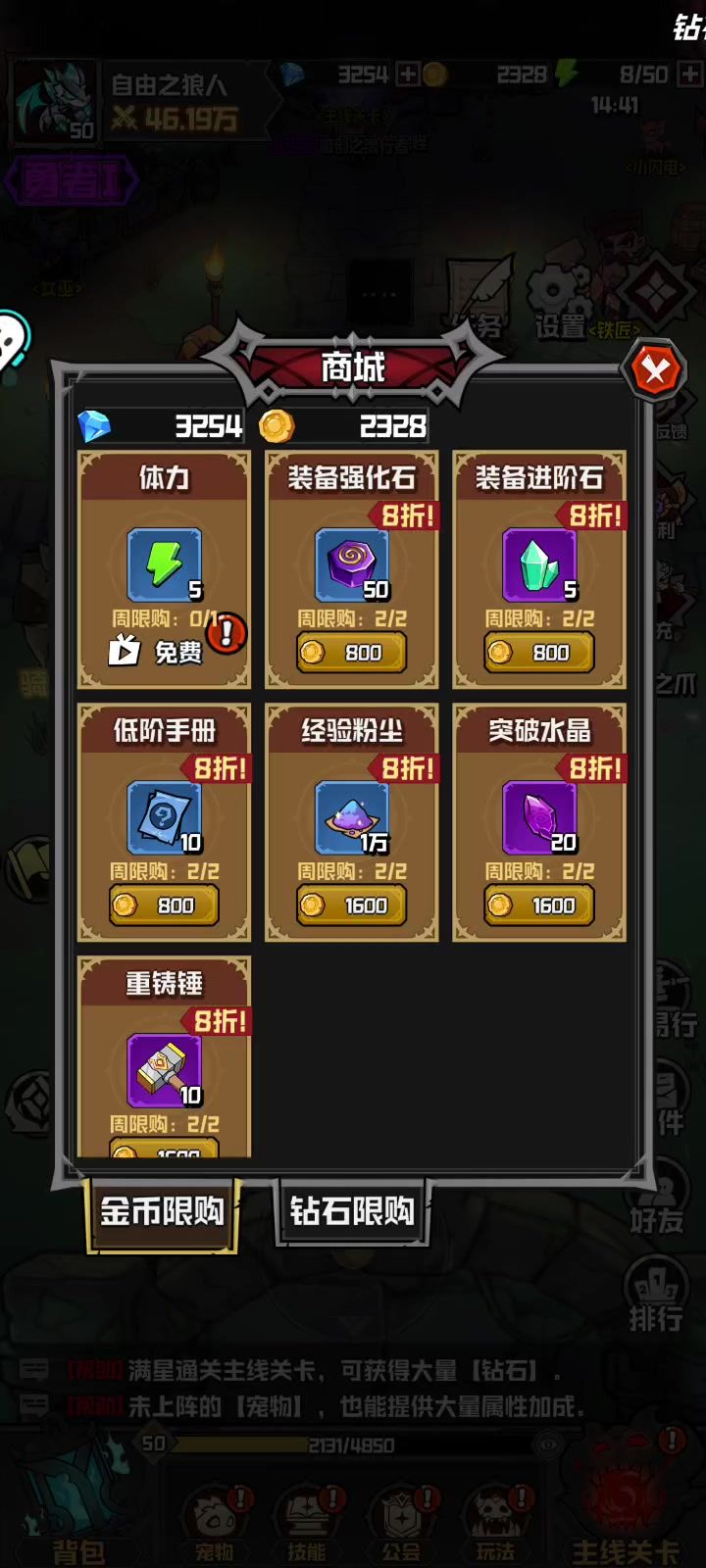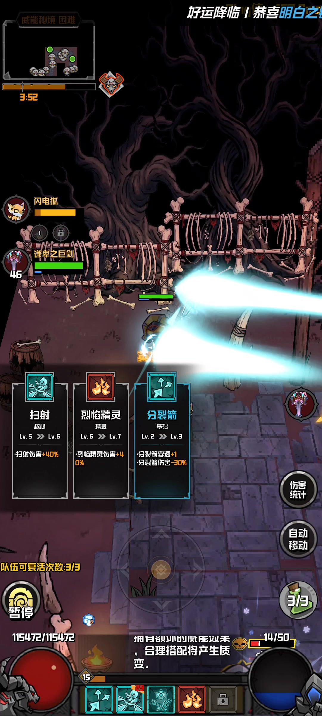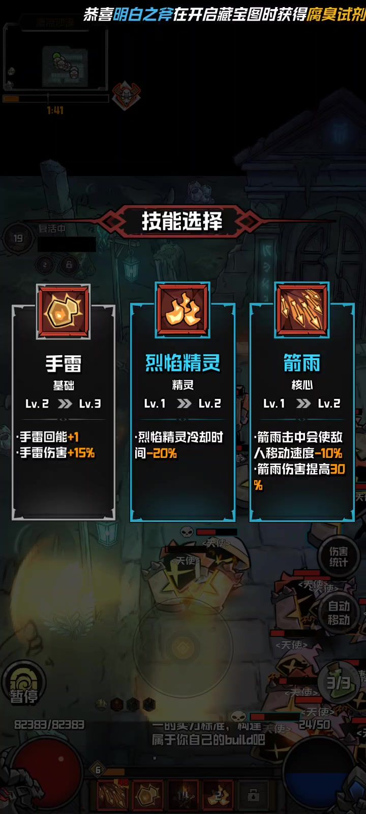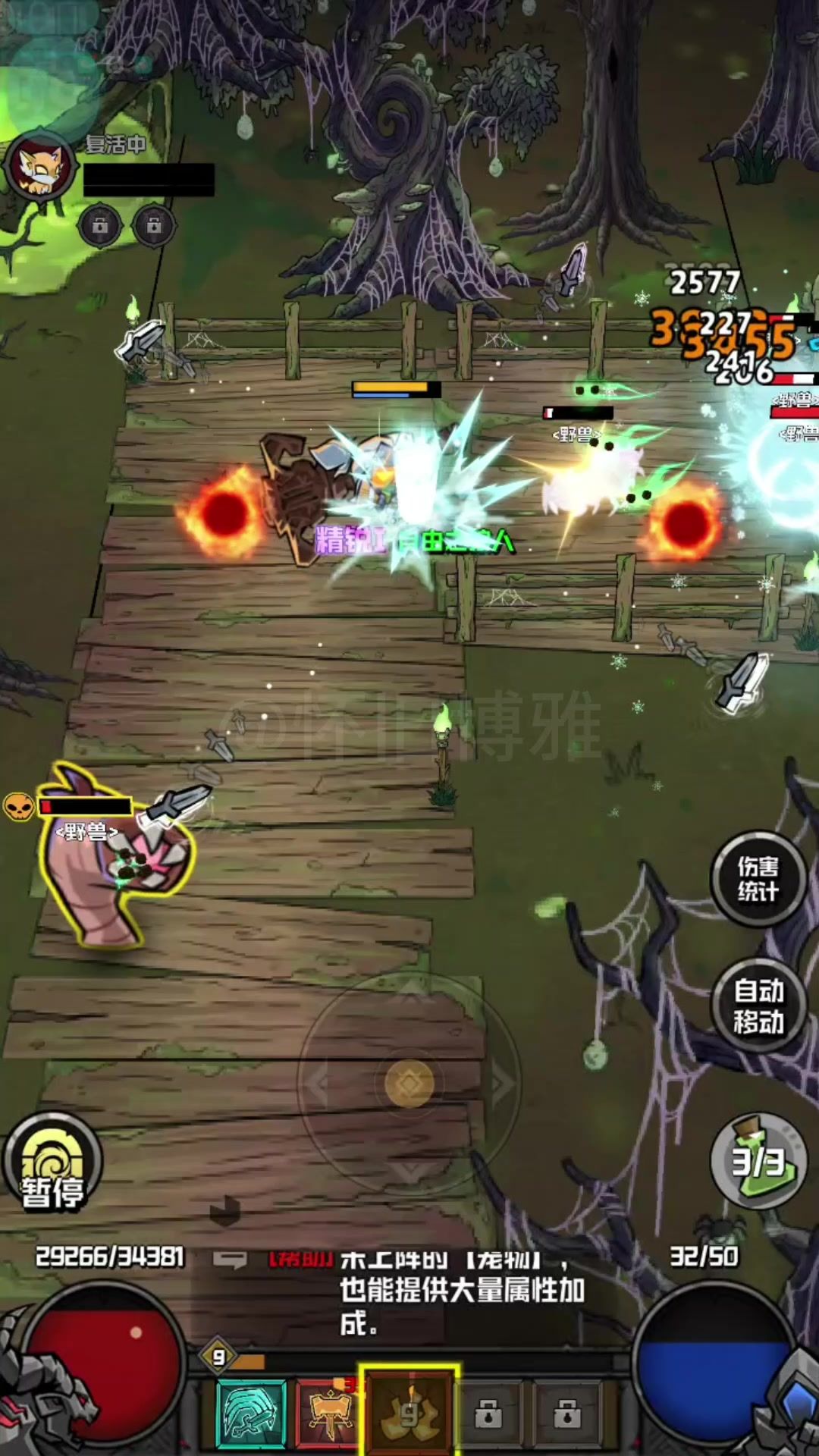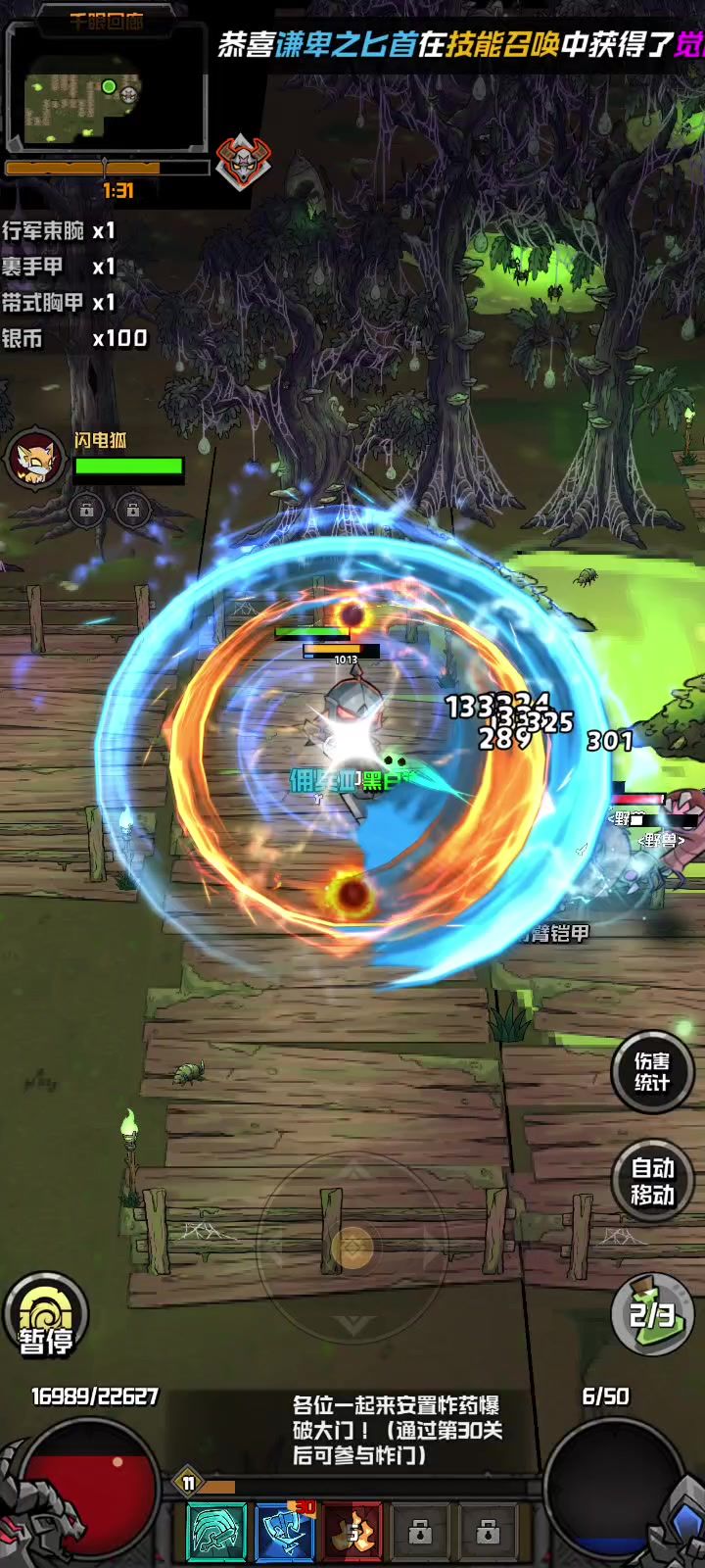 第二次测试的第二天,经过了反复的失败和调整,终于能够单刷了,虽然效率低一些,但是贵在稳定。 开局技能选择冰霜之锤~先祖之锤~烈火精灵。基本都激活了回血功能,但是史诗和传奇技能离得还很远,需要继续加油![表情_斜眼笑] 这次发的并不是攻略,只是记录一下日常! 1区 自由之狼人 #游戏日常 #幻想之刃 #游戏测试