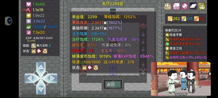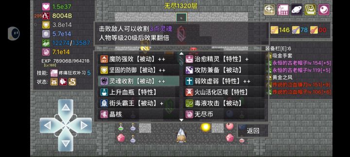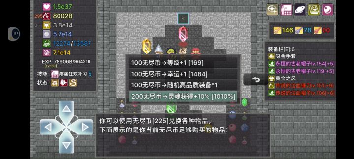300%难度两个自选打到1200多层不想打了就结算了(1330k灵魂奖励),说一下总结。人物选择幻想召唤师。自选一定要选无限可能(选了无限可能之后,在区域宝箱里面拿五蓝耗的疼痛狂欢补习技能跟一件叫左腕的契约这件装备。后面四张图是我二刷的时候修改的这篇攻略加上的(因为发现无尽本土装备并不太重要,除了凑吸血),前期如果就刷出吸金手套,黄金之风就直接穿。无尽后期可以用八卦炉熔炼装备,拿金币经验加成。无