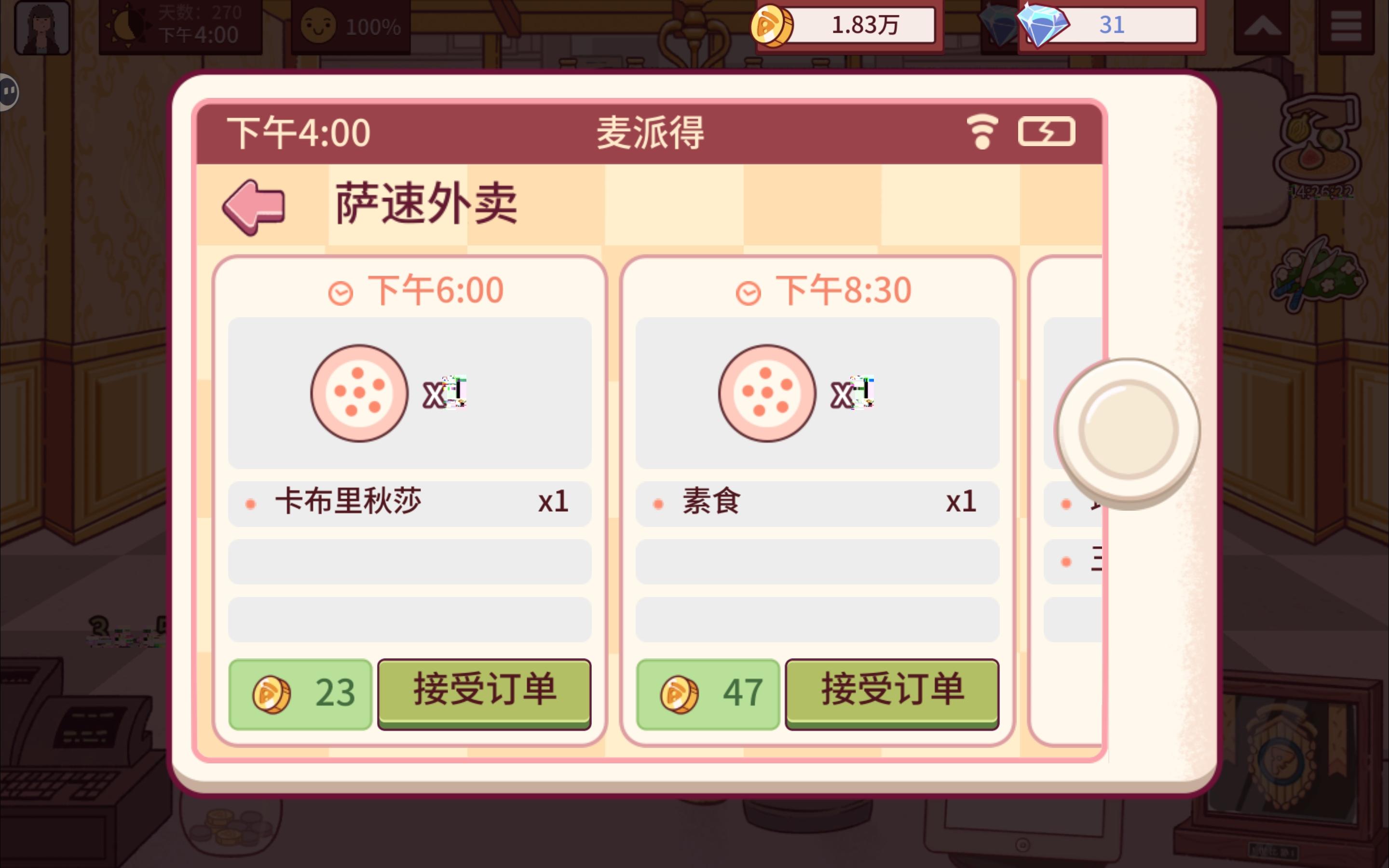 为什么披萨板、制作台、切分台、包装台的金色装扮没有返场,不集齐一套装扮总感觉看起来怪怪的,还有披萨的利润能不能提高一点,真的好肝