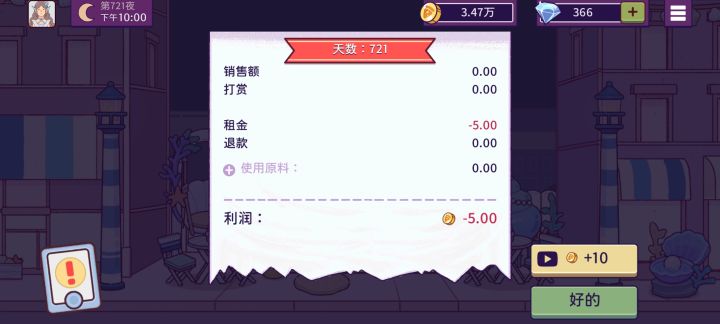 我真无语了,广告为什么关不掉,我无法进入结算页面,没法买配料,修理我得烤箱,整个游戏都没法进行!!!!我要投诉!!!不管是权限给不给这个识别手机动作方向,他都会有广告,都关不掉,我刚才已经反馈了一个了,这又来一个小说广告,我真醉了,头一次玩国服的,好感度为0