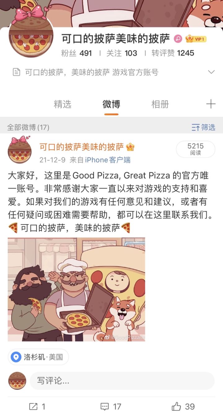 大家好,我们的官方账号“可口的披萨美味的披萨”入驻“新浪微博”和“小红书”啦。也欢迎大家加入“可口的披萨美味的披萨”微博超话和我们以及其他热爱烘培的小伙伴交流互动!非常感谢大家一直以来对游戏的支持和喜爱,如果对我们的游戏有任何意见和建议,或者有任何疑问或者困难需要帮助,都可以在那里找到我们哦!